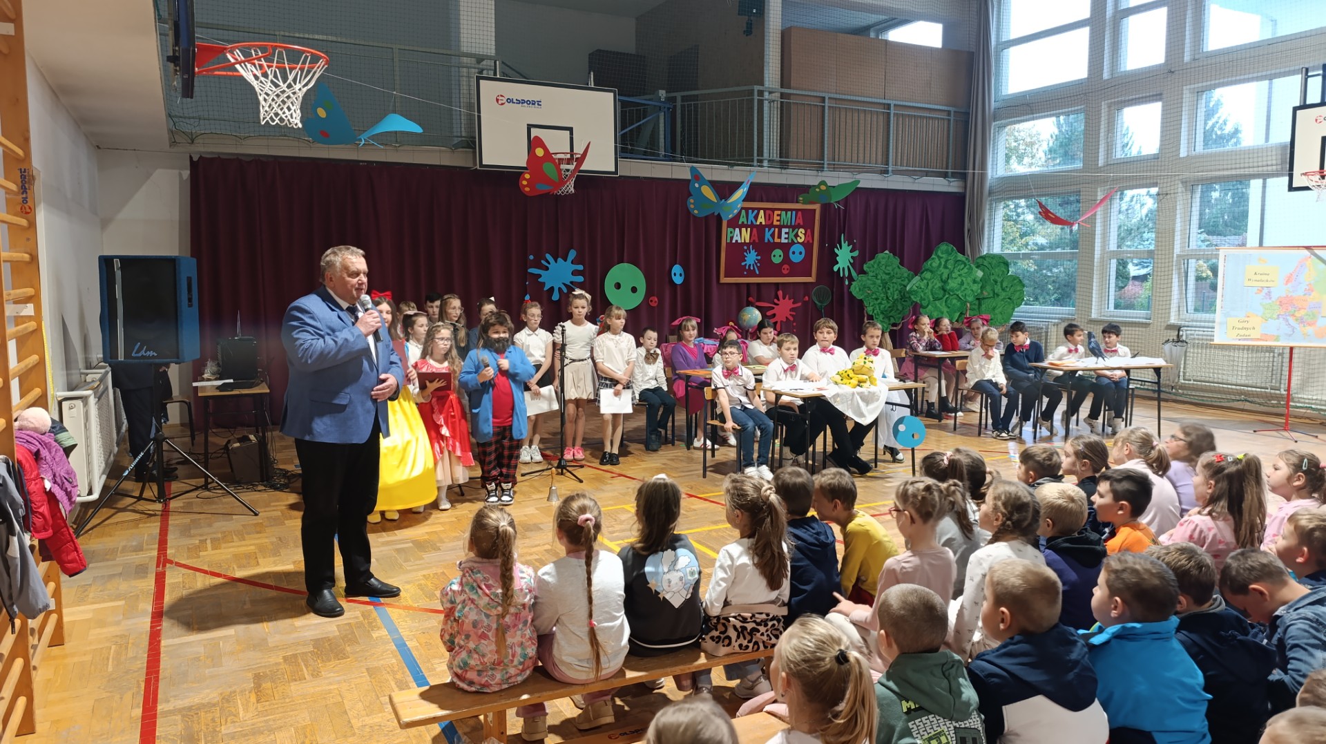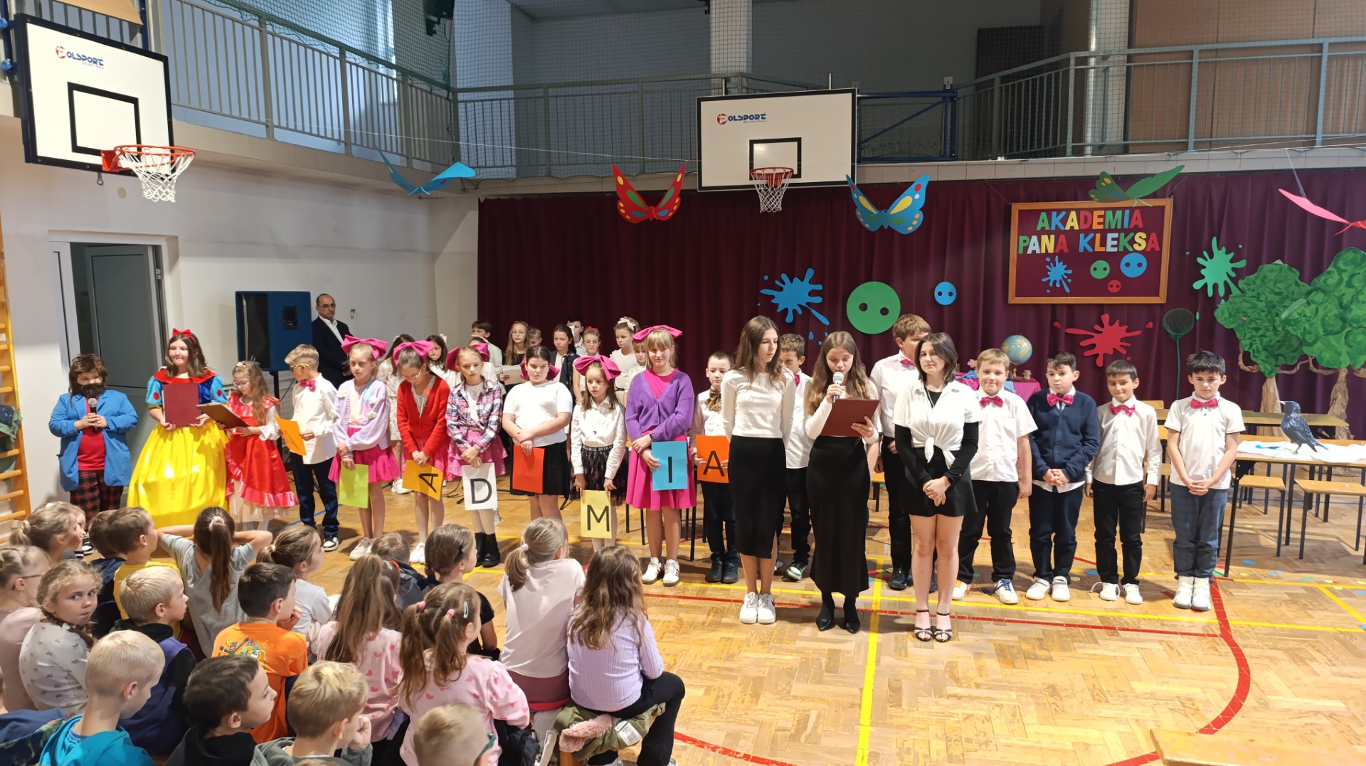 10 października spotykaliśmy się w sali gimnastycznej, by wspólnie świętować Dzień Edukacji Narodowej. Uczniowie klasy 4a i 4b pomogli nam przenieść się w świat niezwykłej szkoły, znanej z kart lektury Jana Brzechwy – „Akademia pana Kleksa”.