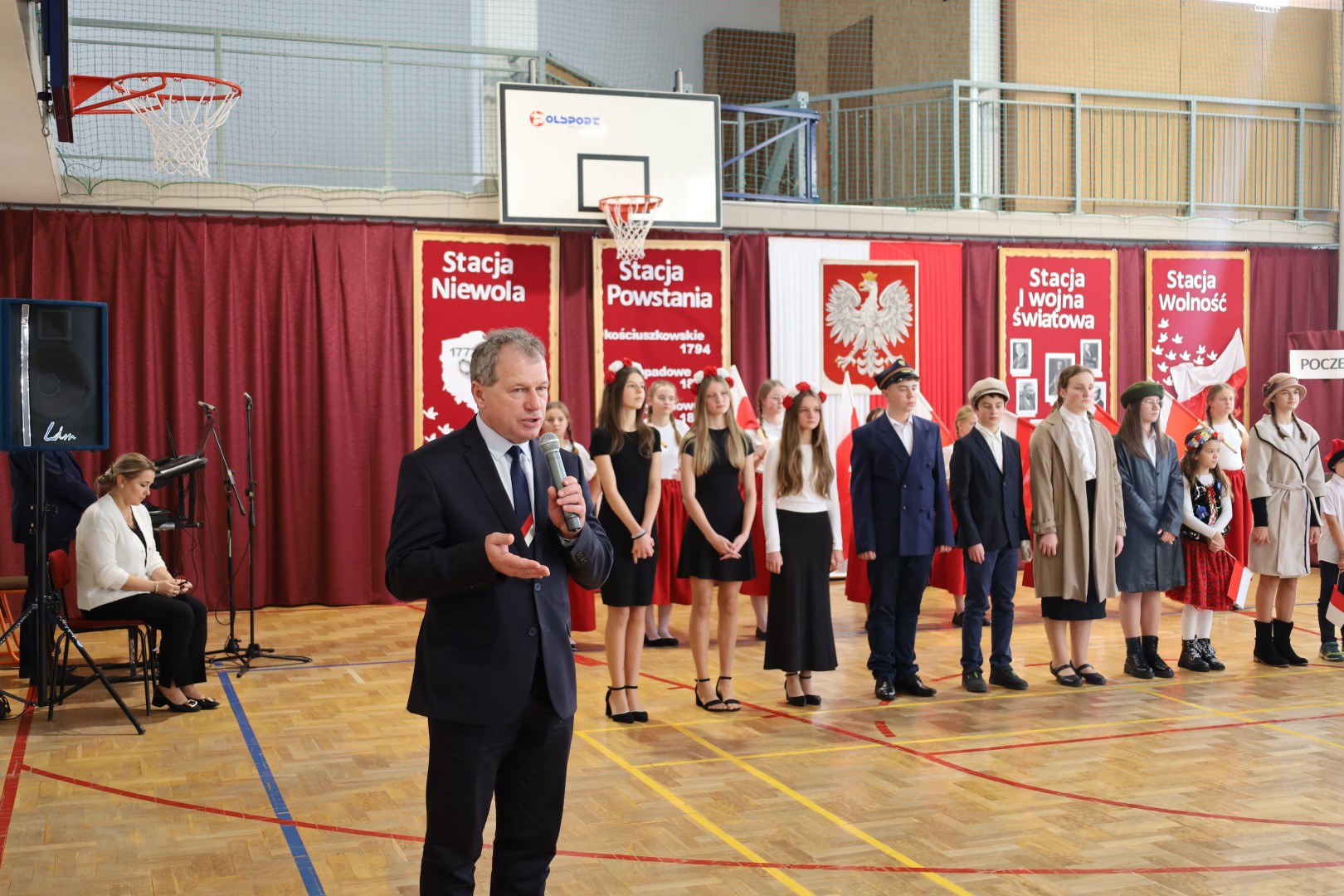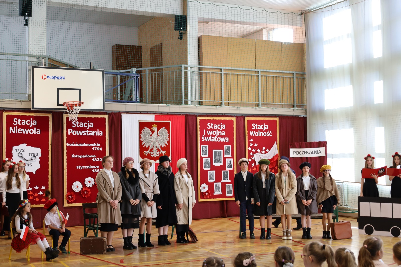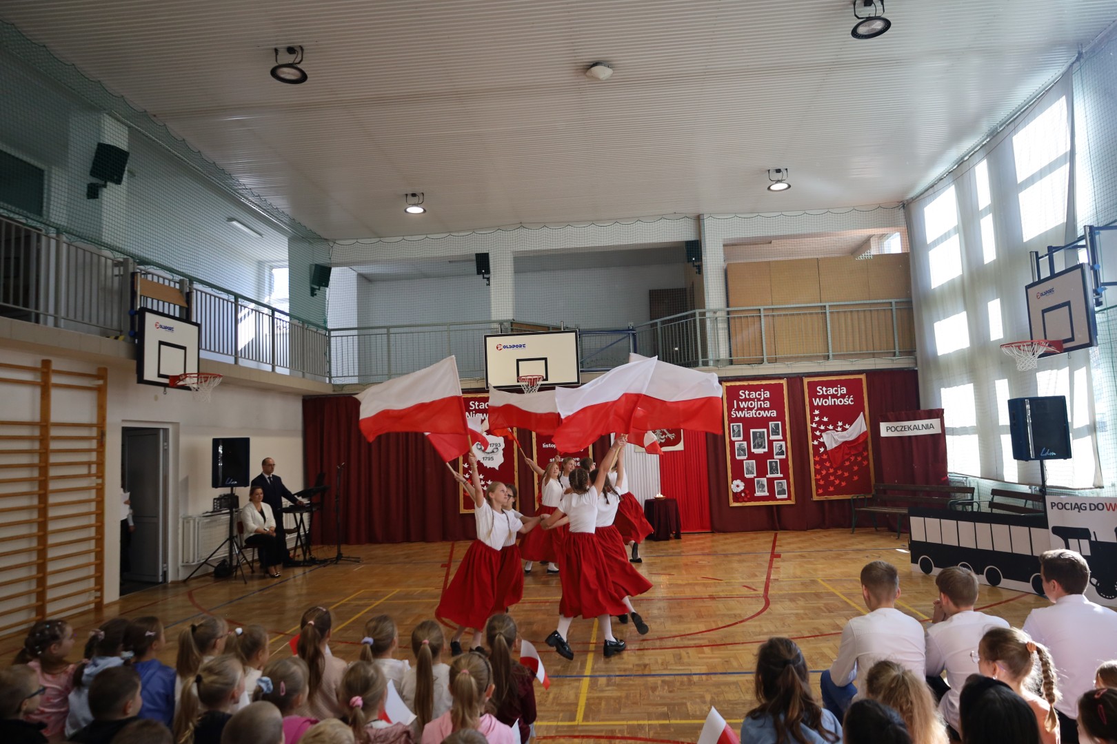 Centralnym punktem uroczystości był montaż słowno-muzyczny „Pociąg do wolności”. Przedstawienie w symboliczny sposób ukazywało drogę Polaków od niewoli, poprzez powstania, I wojnę światową, aż do odzyskania niepodległości. Podczas występu można było usłyszeć patriotyczne wiersze i pieśni, a całość dopełniła dekoracja w barwach biało-czerwonych. Uroczystość miała podniosły charakter i była wyrazem pamięci oraz szacunku dla tych, którzy walczyli o niepodległą Polskę.