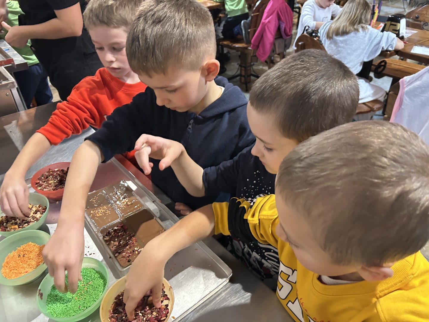 12 grudnia 2025 roku uczniowie klas pierwszych wzięli udział w wyjątkowej wycieczce edukacyjnej, która dostarczyła im wielu ciekawych doświadczeń i niezapomnianych wrażeń. Pierwszym punktem wyjazdu była Pijalnia Czekolady w Korczynie. Podczas wizyty w Pijalni dzieci poznały historię powstawania czekolady – od ziarenka kakaowca aż po gotowy produkt. Uczniowie mieli okazję degustować różne rodzaje czekolady oraz uczestniczyć w warsztatach, podczas których samodzielnie wykonywali czekoladę i czekoladowe lizaki. Każdy uczestnik zabrał własnoręcznie przygotowane słodkości do domu.