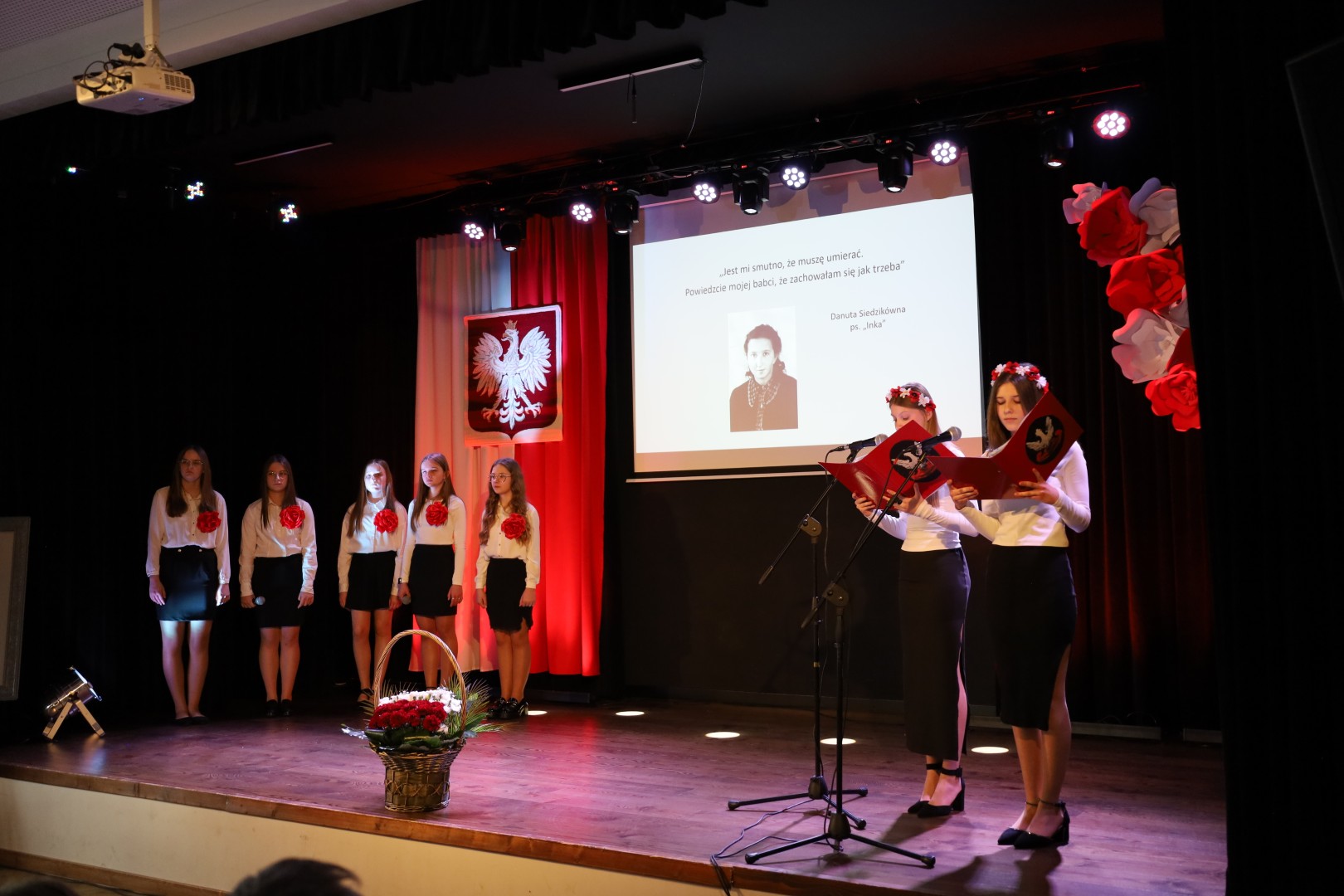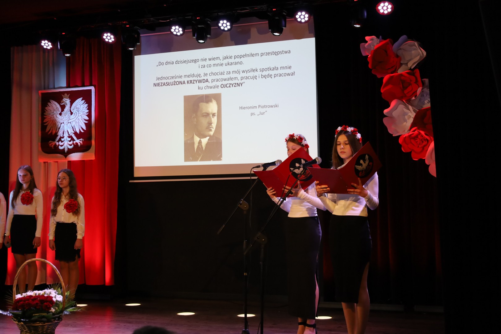Podczas występu uczniowie poprzez recytację wierszy, fragmenty wspomnień oraz wykonane pieśni przybliżyli zgromadzonym trudną historię żołnierzy podziemia niepodległościowego. Całość została zobrazowana przez prezentację multimedialną, zawierającą zdjęcia i filmy. Przedstawienie miało charakter refleksyjny i było wyrazem pamięci oraz szacunku dla tych, którzy po zakończeniu II wojny światowej nie pogodzili się z utratą wolności i walczyli o niepodległą Polskę.