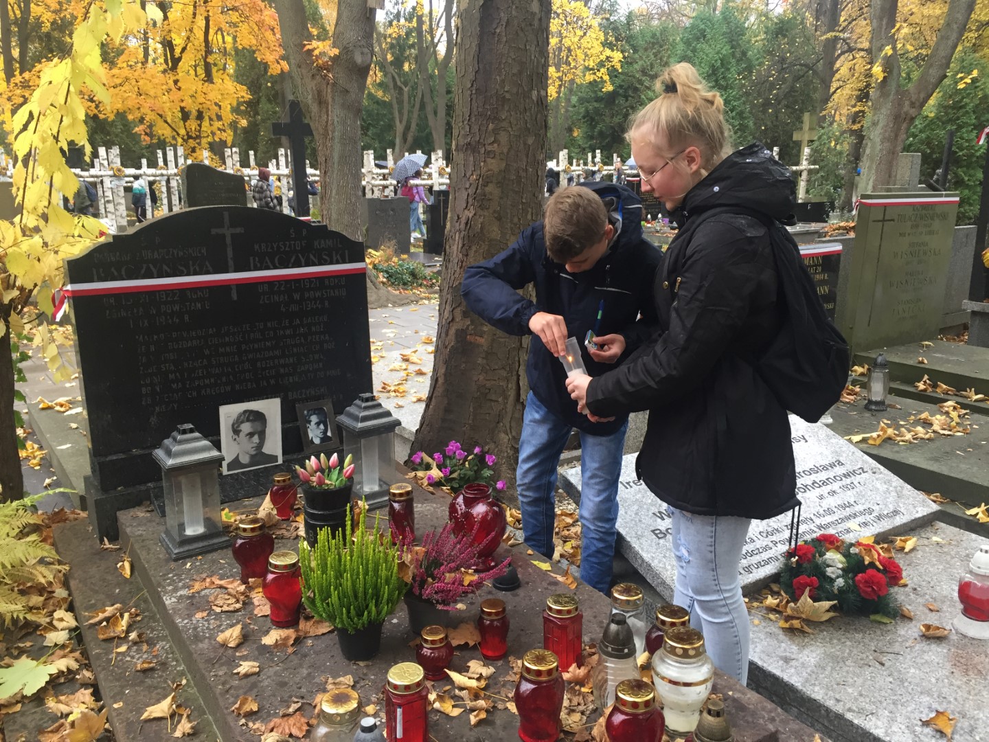 Kolejnego dnia ważnym punktem było zwiedzanie multimedialnego Muzeum Powstania Warszawskiego oraz spacer śladami II wojny światowej ( Pawiak, Cytadela, Pomnik Powstańców, Cmentarz Wojskowy na Powązkach). Ten dzień zakończyli obejrzeniem filmu w multikinie w galerii ,,Złote Tarasy’’.
