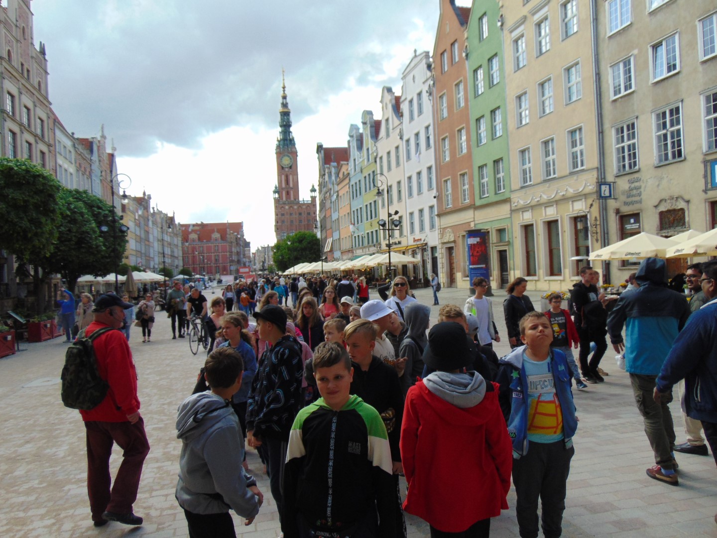 Zespół Szkół w Moszczenicy otrzymał dotację w ramach projektu Poznaj Polskę na trzy wyjazdy w łącznej kwocie 30 tys. zł. Po wycieczce dwudniowej do Warszawy, jednodniowej do Krakowa kolej na najdłuższą, trzydniową wycieczkę po północnej Polsce. Trzydniowa wycieczka dofinansowana kwotą 15 tys. zł była połączona z wyjazdem na Zieloną szkołę. Dlatego w dniu 26 maja startowaliśmy z naszej bazy w Ośrodku Moderna w Jastrzębiej Górze. We czwartek zwiedziliśmy Gdynię i Gdańsk. Rozpoczęliśmy od skweru Kościuszki w Gdyni podziwiając zacumowane zabytkowe okręty. Połowa grupu zwiedziła ORP Błyskawica będący częścią Muzeum Marynarki Wojennej, a pozostali uczestnicy Okręt Muzeum – Dar Pomorza. Na Darze Młodzieży podziwialiśmy ćwiczenia młodych marynarzy wspinających się przy dużym wietrze po wysokich masztach. Później przejechaliśmy do Gdańska i z przewodnikiem przeszliśmy Traktem Królewskim przez Główne miasto.
