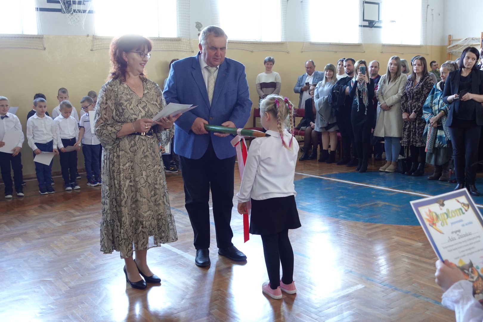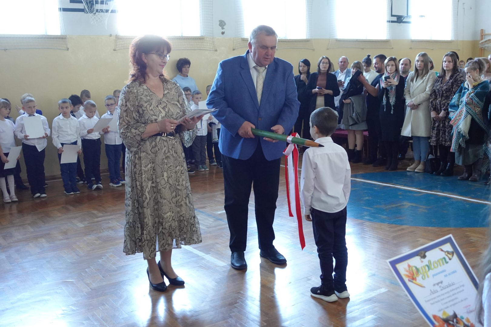 25 października 2024r. w naszej szkole odbyła się uroczystość Pasowania na Ucznia i Czytelnika. W trakcie ceremonii pierwszoklasiści złożyli uroczyste ślubowanie przy sztandarze szkoły, co stanowiło ważny moment w ich edukacyjnej podróży. Pan Dyrektor Witold Bogdan dokonał aktu pasowania, co było dla dzieci bardzo emocjonującym przeżyciem. Uczniowie zaprezentowali swoje talenty, recytując wiersze oraz śpiewając piosenki. Pierwszoklasiści głośno i z przekonaniem przyrzekały być dobrymi i pilnymi uczniami oraz rzetelnie wypełniać swoje obowiązki o czym przypominać im będą otrzymane dyplomy. Po tej ceremonii nastąpiło pasowanie na czytelnika , który dokonała pani Dorota Kozioł. Następnie uczniowie otrzymali pamiątkowe książeczki. Rodzice zdecydowali, że kolejnym prezentem z okazji pasowania będzie wyjazd do kina, który nastąpi już niebawem - 19 listopada 2024r. Wszystkim pierwszoklasistom w tak ważnym dla nich dniu życzymy wielu sukcesów na nowej drodze obowiązków szkolnych