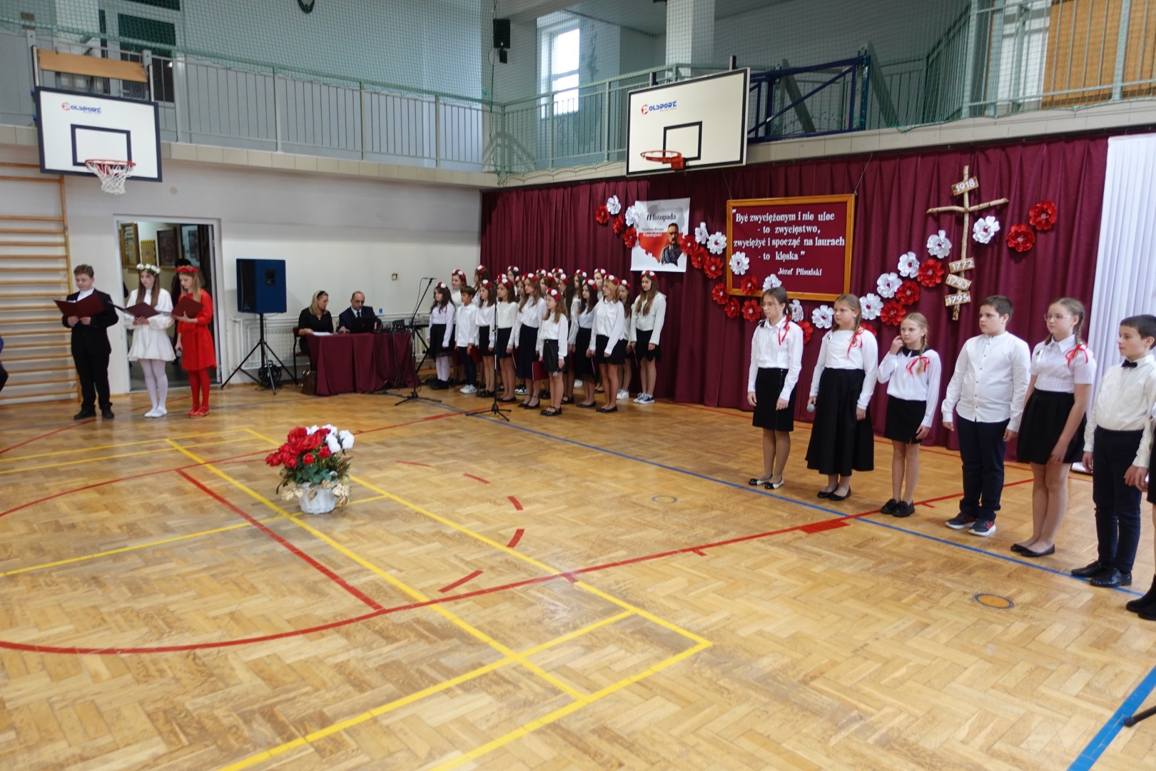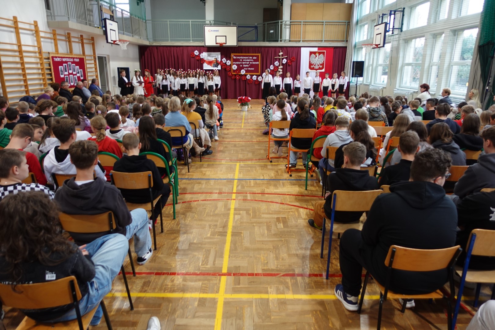 Na samym początku wspólnie odśpiewano Hymn Polski. Szkoła w ten sposób potwierdziła swój udział w projekcie ,,Szkoła do hymnu 2024’’ .