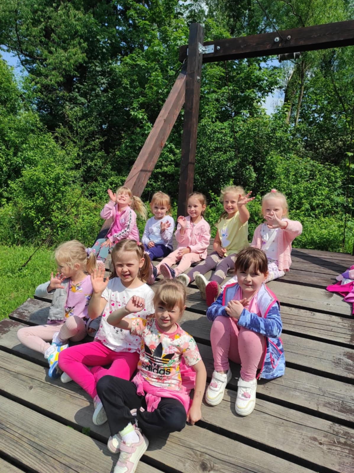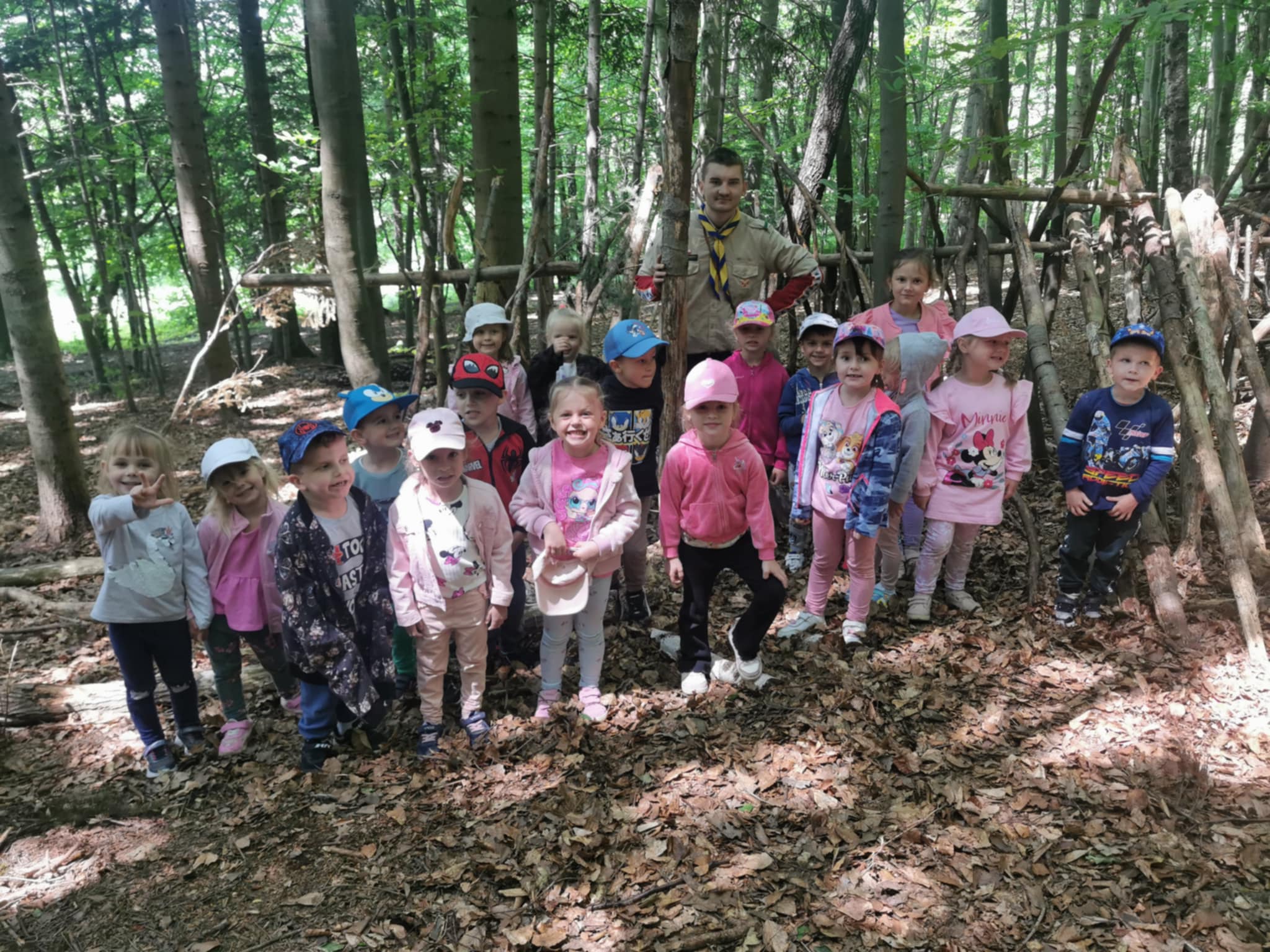 W słoneczny poranek, 10 czerwca przedszkolaki z grup Muchomorki i Jagódki wyruszyły na wycieczkę autokarową do miejscowości Łosie. W zagrodzie edukacyjnej "Skrawek Nieba" czekało na nie wiele atrakcji i niespodzianek. Przedszkolaki wzięły udział w zajęciach plastyczno - technicznych, podczas których wykonały zakładkę do książki z własnoręcznie zebranych ziół i kwiatów. Kolejną atrakcją była wędrówka z przewodnikiem, który w ciekawy sposób opowiedział o zwierzętach leśnych żyjących w okolicach Łosia, zasadach zachowania podczas wycieczek do lasu. Dzieci z wielkim zaangażowaniem za pomocą lup obserwowały przyrodę, tworzyły leśne obrazy. Nauczyły się również budować szałas. Po powrocie z lasu przedszkolaki uczestniczyły w zajęciach kulinarnych, podczas których własnoręcznie przygotowały tradycyjne proziaki, które później ze smakiem pałaszowały. Na pewno te wspaniałe przygody zostaną na długo w ich pamięci.