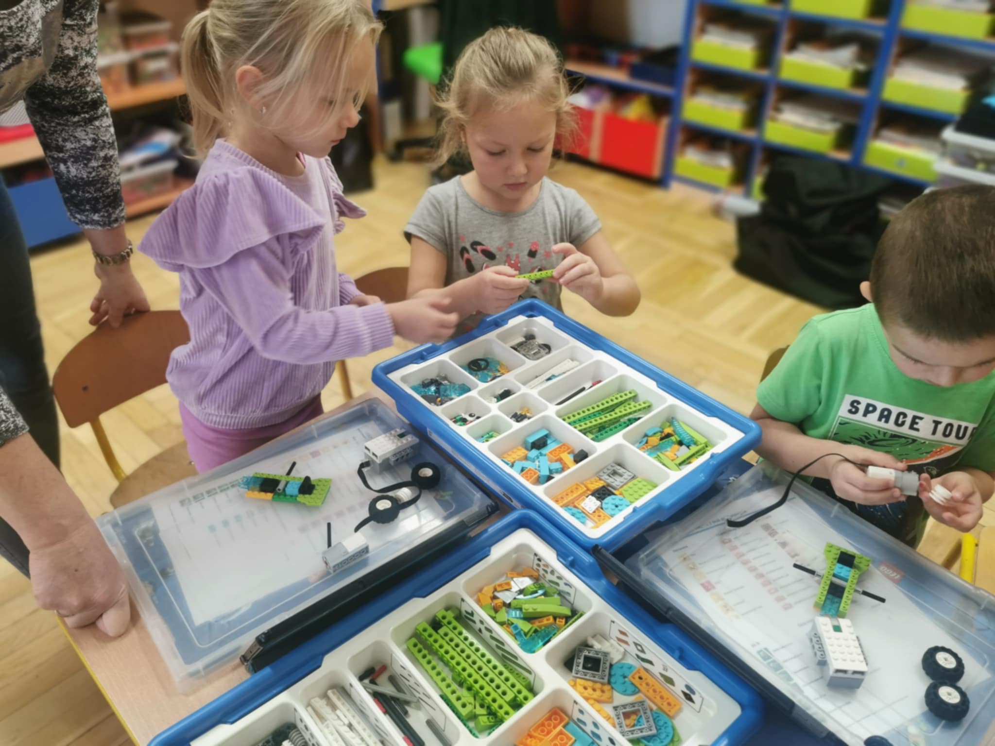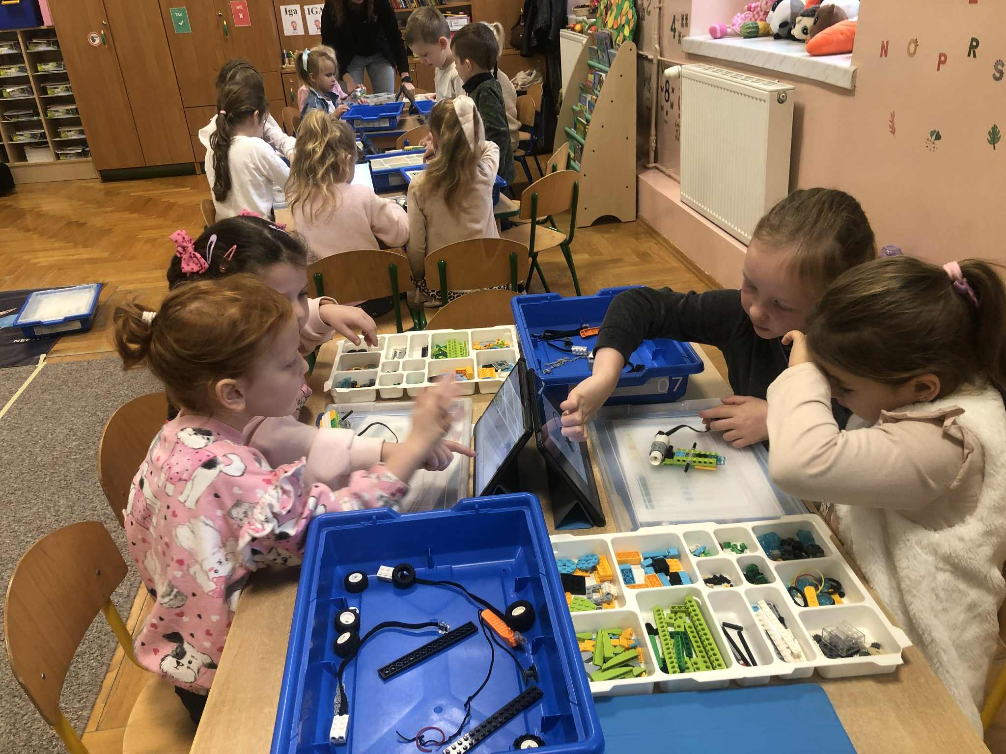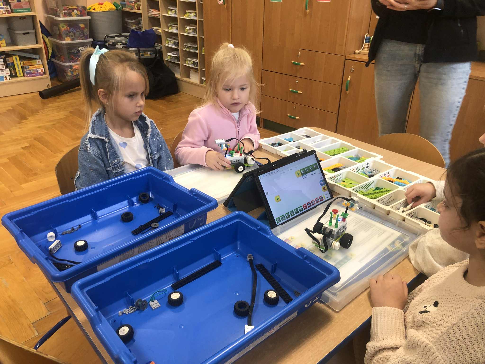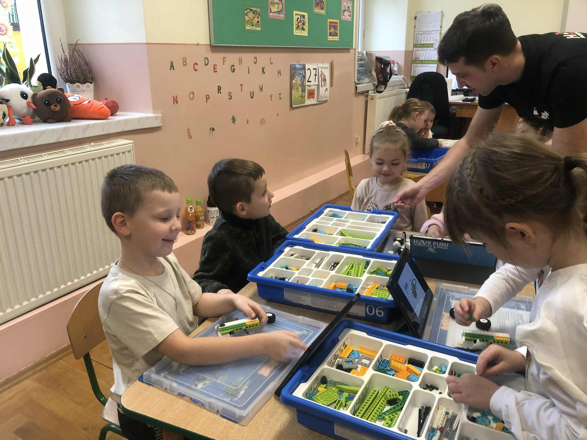 W dniu 27.10 nasze przedszkole odwiedzili: pani Ola i pan Kamil z firmy Robotyka Have Fun, którzy przeprowadzili w przedszkolu zajęcia z robotyki. Przedszkolaki miały do swojej dyspozycji klocki LEGO i tablety dzięki, którym uczyły się programowania. Z pomocą wszelkiego rodzaju edukacyjnych klocków LEGO dostosowanych do wieku uczestników, dzieci uczyły się konstruowania i składania najprawdziwszych robotów oraz budowli.