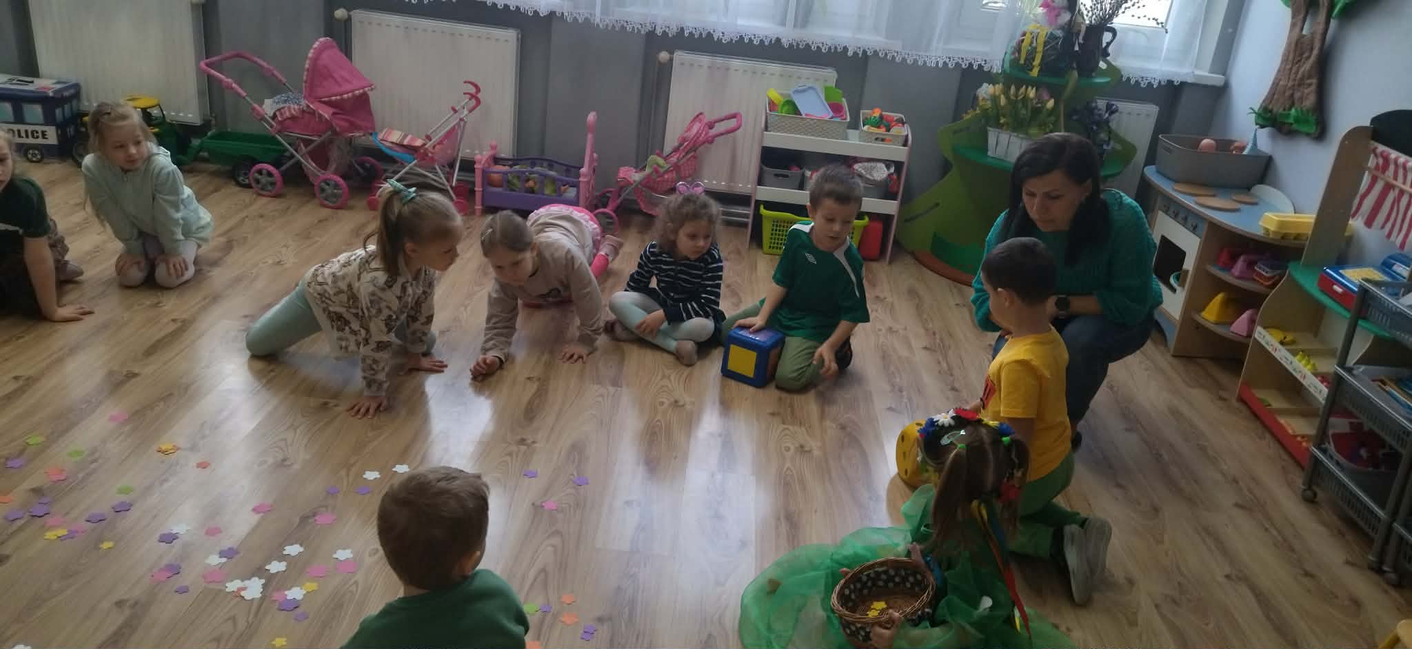 Dnia 20 marca w naszym przedszkolu radośnie powitaliśmy długo wyczekiwaną wiosnę. Już od samego rana panowała wyjątkowa, kolorowa atmosfera – dzieci przyszły ubrane na zielono oraz w stroje nawiązujące do wiosny. Przedszkolaki uczestniczyły w licznych zabawach ruchowych, śpiewały wiosenne piosenki oraz brały udział w wielu wiosennych rywalizacjach. Nie zabrakło również tradycyjnego akcentu – wspólnie pożegnaliśmy zimę, żegnając Marzannę, a potem wyruszyliśmy na wiosenny spacer. Podczas przechadzki dzieci obserwowały pierwsze oznaki nowej pory roku – pąki na drzewach, śpiew ptaków oraz pierwsze wiosenne kwiaty. Wiosno – witaj wśród nas!