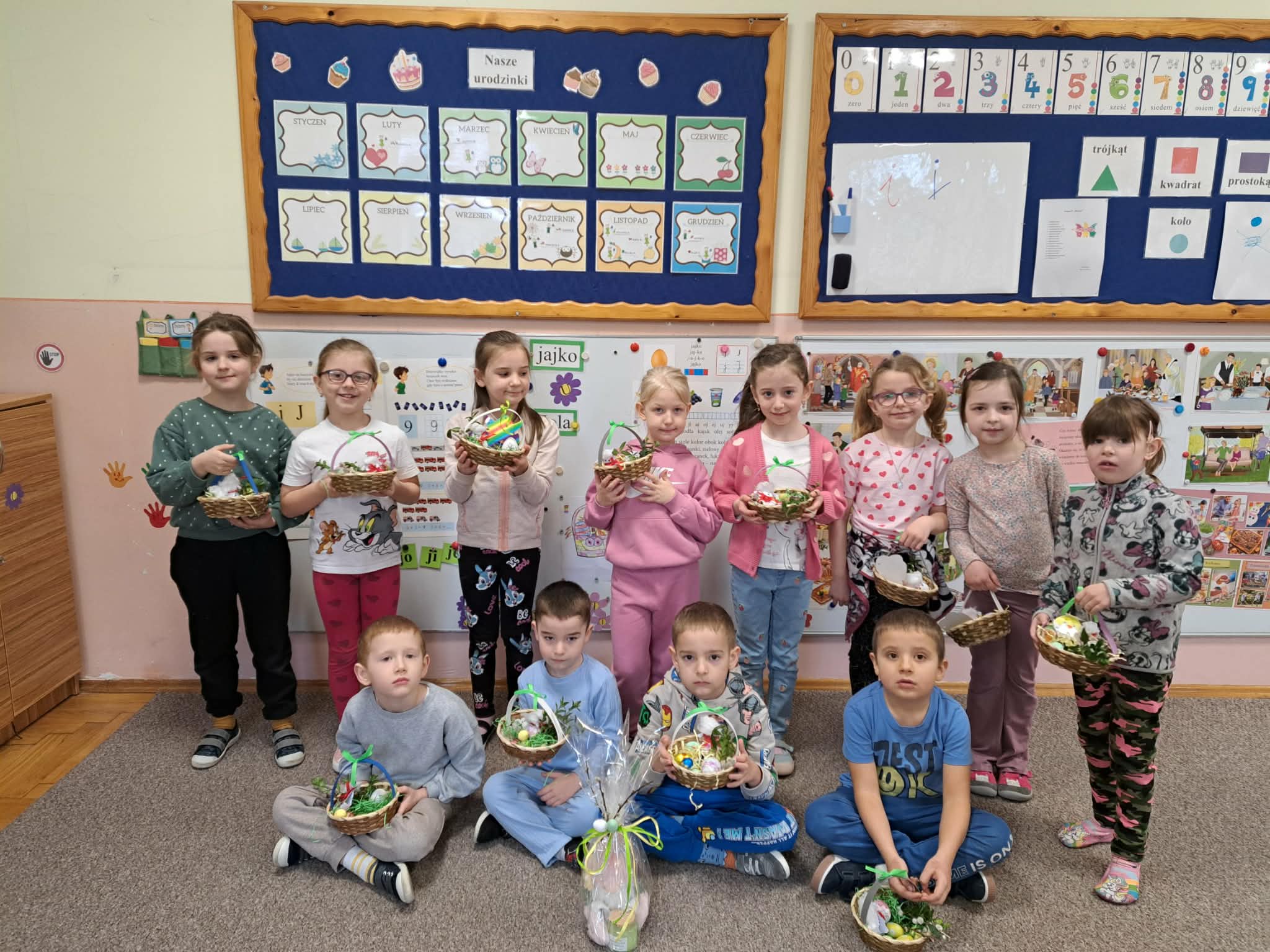 W naszym przedszkolu zapanowała prawdziwie świąteczna atmosfera. Dzieci z ogromnym zaangażowaniem przygotowywały się do nadchodzących Świąt Wielkanocnych, poznając ich tradycje oraz znaczenie. Jednym z najradośniejszych elementów tych przygotowań było własnoręczne wykonywanie stroików wielkanocnych dla najbliższych.