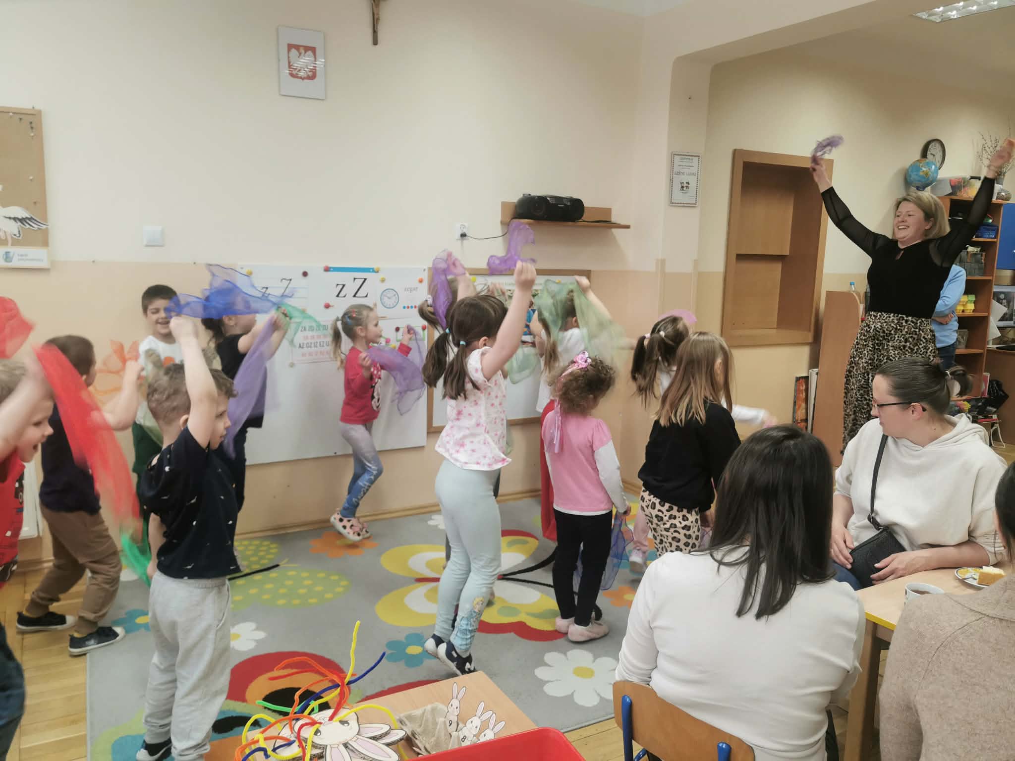 Równie ważnym wydarzeniem były zajęcia otwarte dla rodziców. Była to doskonała okazja, aby wspólnie spędzić czas, zobaczyć dzieci w codziennych sytuacjach przedszkolnych oraz aktywnie włączyć się w proponowane zabawy i zadania. Dzieci z radością prezentowały swoje umiejętności, a obecność rodziców dodała im pewności siebie i jeszcze większej motywacji do działania.