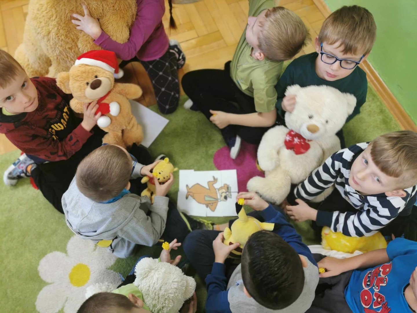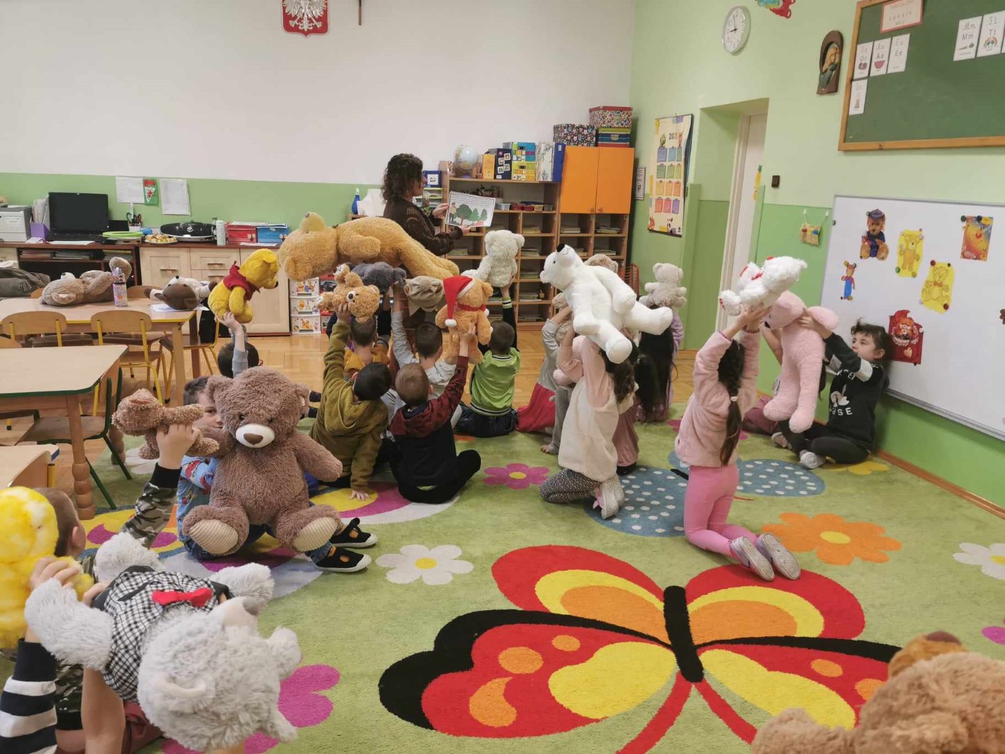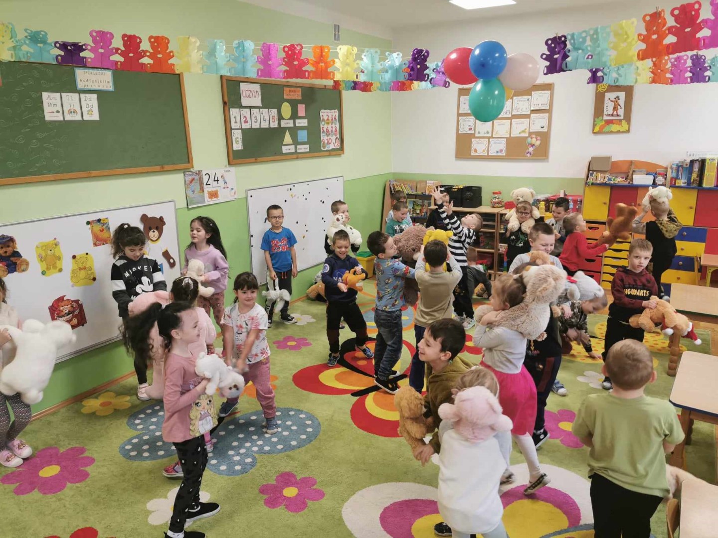 Dnia 25 listopada swoje święto obchodzi najlepszy przyjaciel maluchów i najmilsza przytulanka przy zasypianiu – Pluszowy Miś. W naszym przedszkolu wszystkie grupy uczciły to święto w piątek - 24 listopada śpiewem i różnymi zabawami związanymi z pluszowym misiem. Ponadczasowość pluszowych misiów sprawiła, że bajki w których w roli głównej występują misie są chętnie oglądane przez kolejne pokolenia dzieci. Sam pluszak jest ponadto symbolem dobra, miłości, ciepła, łagodności i opiekuńczości, czyli tego, czego jako ludzie bardzo pragniemy. Przedszkolaki z tej okazji wykonały prace plastyczne, malowały, pluszowego gipsowego misia. Nie zabrakło wspólnych zabaw muzyczno – ruchowych przy misiowych piosenkach oraz słodkich niespodzianek. Ten dzień przebiegał w bardzo miłej i sympatycznej atmosferze, a uczestnikom sprawił wiele radości i dostarczył miłych wrażeń.