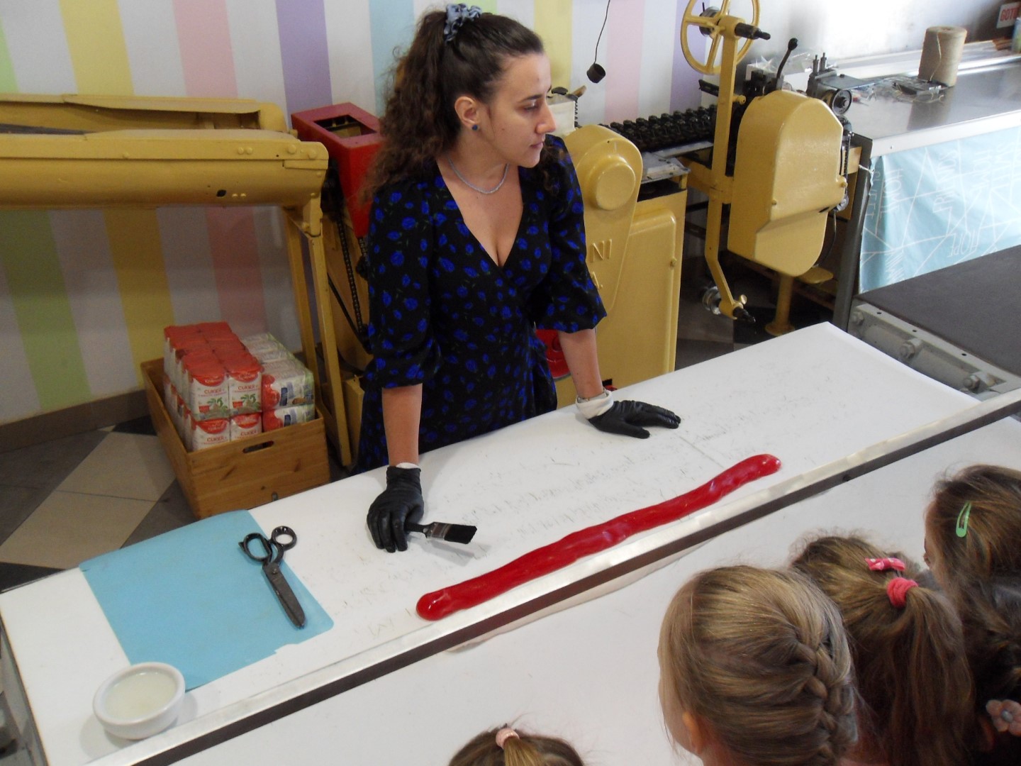 18 października 2024 roku dzieci z grup: Skrzaty i Wesołki wybrały się na wycieczkę do Muzeum Lizaka w Jaśle. Zwiedzanie muzeum zaczęliśmy od sklepiku ze słodkościami, gdzie dzieci mogły oglądać różne kolorowe lizaki. Pani przewodnik w ciekawy sposób opowiedziała o początkach powstawania lizaków oraz jak wyglądała ich produkcja na przestrzeni lat. Zapoznaliśmy się z zawodem cukiernika i karmelarza. Poznaliśmy również proces tworzenia karmelu, barwienia, łączenia w różne kolory. Największą atrakcją dla wszystkich przedszkolaków była możliwość własnoręcznego zrobienia lizaka z przygotowanej masy. W muzeum mogliśmy również posmakować cukrów, z których produkuje się lizaki i powąchać aromatów dodawanych do karmelu, aby nadać mu różne smaki. Potem udaliśmy się na warsztaty robienia pizzy, gdzie bliżej poznaliśmy zawód kucharza. Po wysłuchaniu krótkiej historii o włoskiej pizzy i po dokładnym umyciu rąk każdy otrzymał porcję swojego ciasta i po rozwałkowaniu mógł przyozdobić swoje ciasto sosem pomidorowym, szynką, salami, kukurydzą i serem według własnych pomysłów i smaków. Następnie wszystkie pizze zostały upieczone, a na koniec każdy z apetytem zjadł swoją. Dzieci pełne wrażeń i z uśmiechem na twarzy wróciły do przedszkola.
