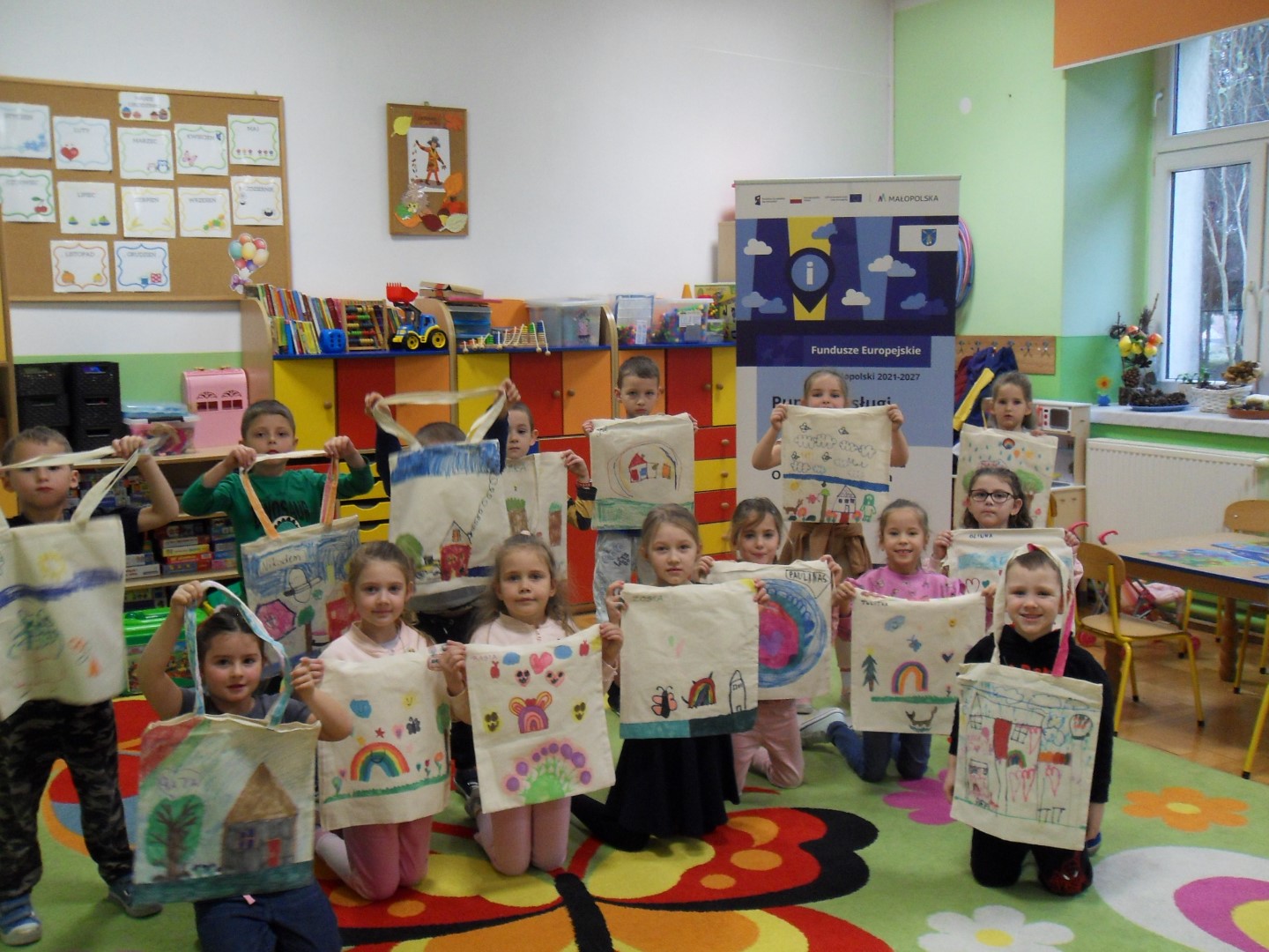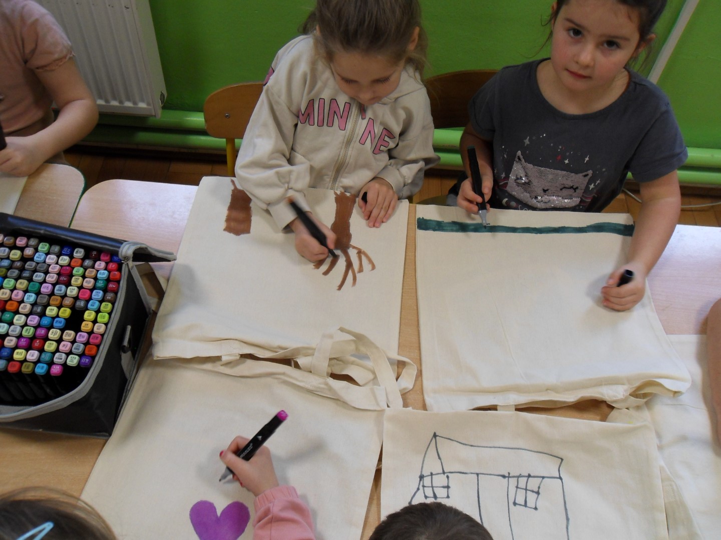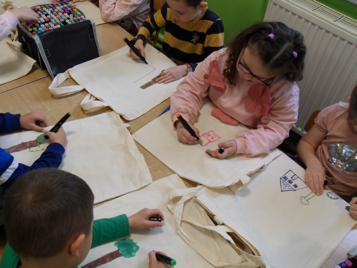 Dnia 21.11.2024 w grupach starszych odbyło się spotkanie z Ekodoradcą. Dzieci miały okazję dowiedzieć się jak ważna jest ochrona czystego powietrza i jak możemy je chronić. Wysłuchały bajki „Niedźwiedź Bruno – Czyste powietrze”. Na zakończenie dzieci ozdabiały własnoręcznie ekotorbę.