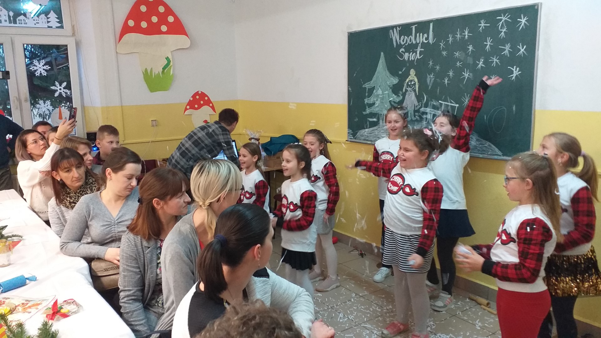W dniu 17 grudnia 2021 odbyło się kolejne Spotkanie Rodzin w Placówce Wsparcia Dziennego. Grupa rytmiczna pani Magdaleny Zielińskiej graniem i śpiewanie kolęd rozpoczęła wspólne spotkanie. Oprócz dzieci i rodziców w spotkaniu uczestniczyli wychowawcy oraz koordynator szkolny Witold Bogdan oraz kierownik projektu Halina Łaś. Przy wigilijnym żurku i piernikach powspominaliśmy ostatni okres pracy w projekcie. Czas od wakacyjnego Festynu Rodzin to wiele wyjazdów i atrakcyjnych zajęć. Próbowaliśmy również zaplanować kolejne miesiące w następnym roku działalności. Uczniowie z wychowawcami zajęli się tworzeniem kartek świątecznych. Tak zakończyliśmy ostatni dzień stacjonarnych działań w szkole. W okresie nauki zdalnej Placówka funkcjonuje i zaprasza chętnych uczniów.
