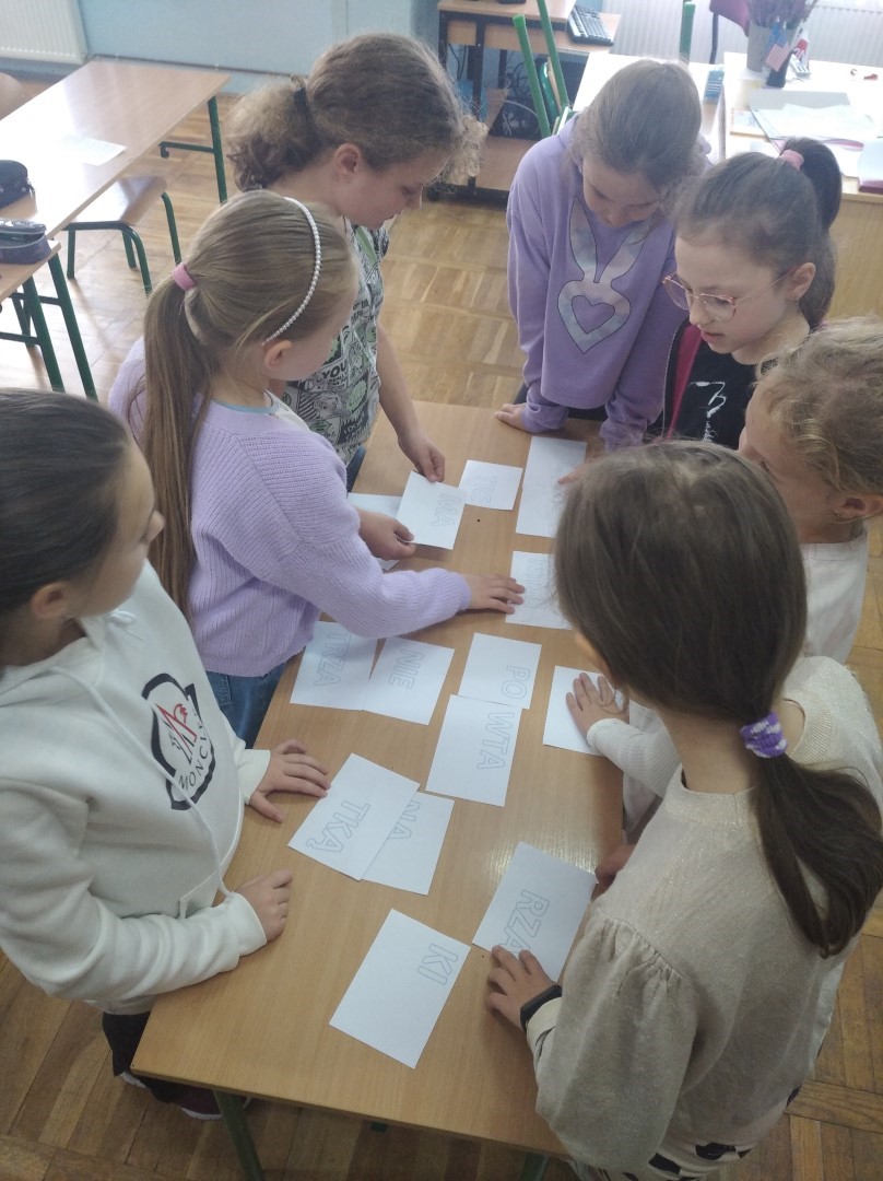 Zajęcia z języka polskiego zostały zorganizowane m.in. dla uczniów klasy 4a. Podczas zajęć uczniowie rozwijają przede wszystkim umiejętność rozumienia różnorodnych tekstów literackich, popularnonaukowych, tekstów użytkowych, ale także tekstów kultury w tym widowisk teatralnych. Rozwiazywanie konkretnych problemów, rozmowy, dzielenie się emocjami, przedstawianie propozycji własnych rozwiązań służy zdobywaniu i rozwijaniu kompetencji kluczowych.