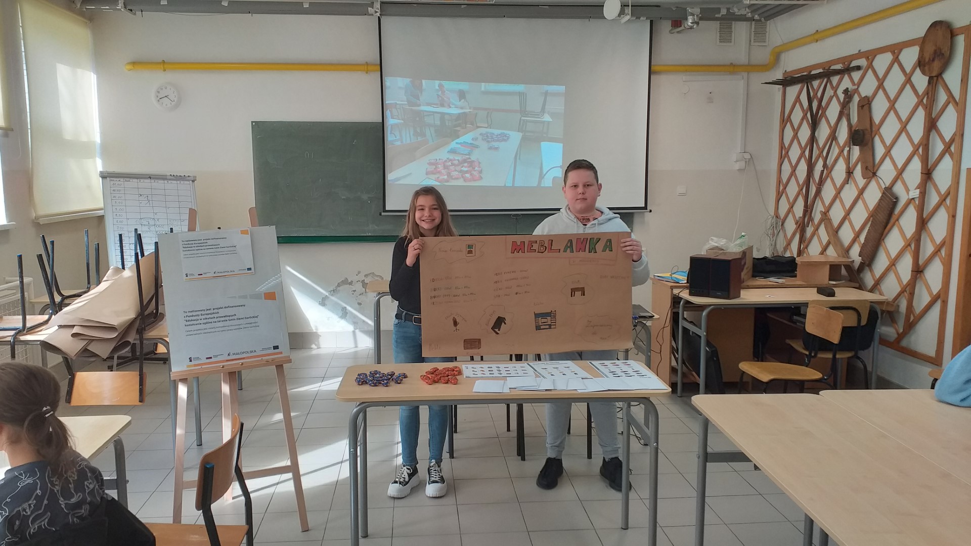 Po świątecznej przerwie kontynuujemy udział w projekcie ,,Edukacja w szkołach prowadzących kształcenie ogólne na terenie Gmin Ziemi Gorlickiej” na zajęciach z zakresu „Inicjatywność i przedsiębiorczość”. Rozpoczynamy trzeci moduł „Pieniądze i bankowość”. Zajęcia rozpoczęliśmy wizytą w kraju w którym nie ma pieniędzy. Każdy z uczestników był jedynym producentem pewnych towarów. Po zaspokojeniu własnych potrzeb próbował na rynku wymienić nadwyżki swojej produkci na inne potrzebne produkty. Okazało się to bardzo trudnym zadaniem. Tak poznaliśmy zasady wymianu barterowej: towar za towar. Później do „naszego kraju” udało się wprowadzić pieniądz. Uczestnicy tą walutę nazwali „hasjek”. Teraz to samo zadanie wymiany towarów okazało się dużo łatwiejsze. Na tej podstawie określiliśmy rolę, zalety, cechy i formy pieniądza. Jak zwykle dużą pomocą było oglądanie filmów z cyklu „Podstawowe pojęcia ekonomiczne”. Dzięki tym zajęciom na pewno bardziej docenimy rolę pieniądza z naszych portfelach, kartach lub telefonach.