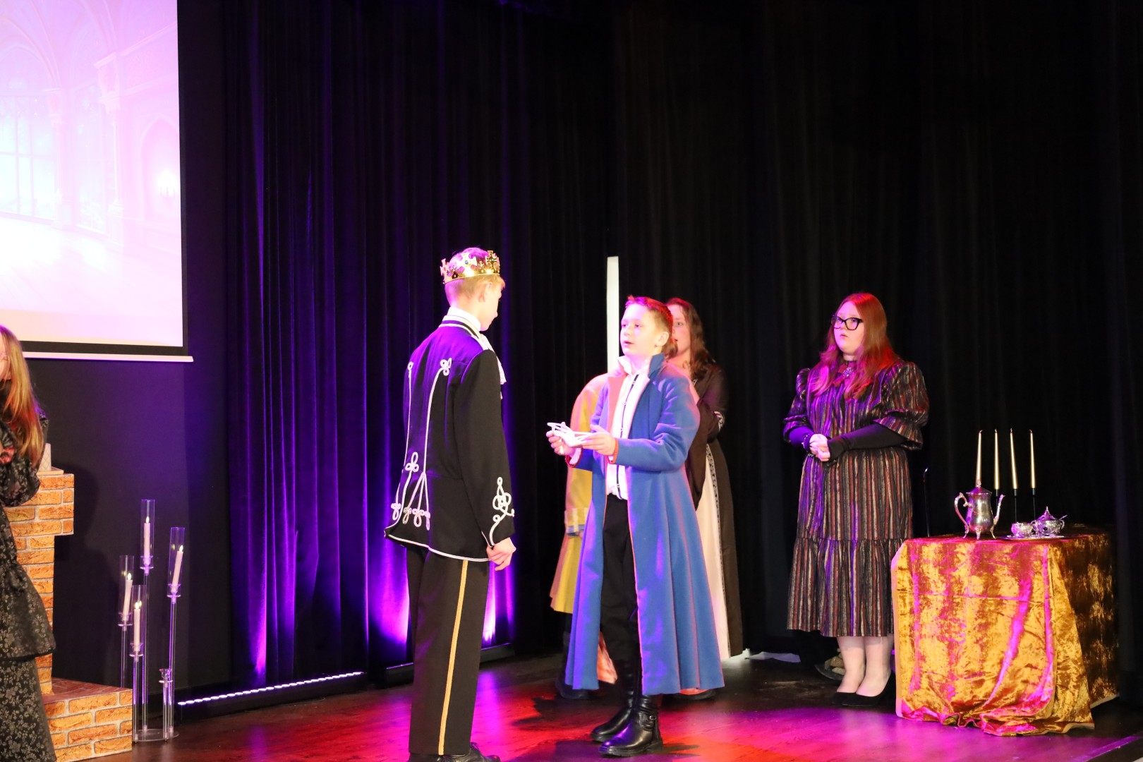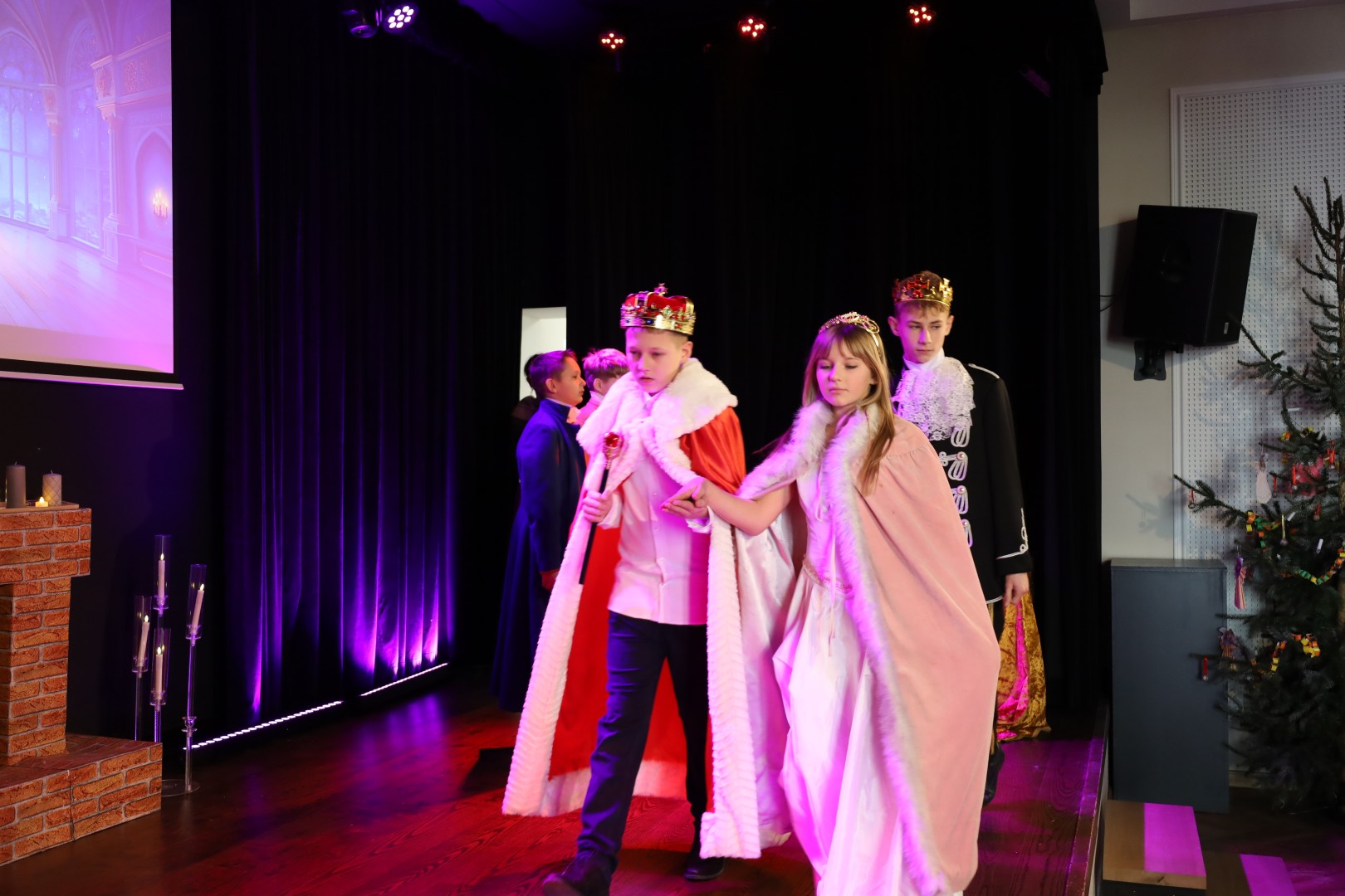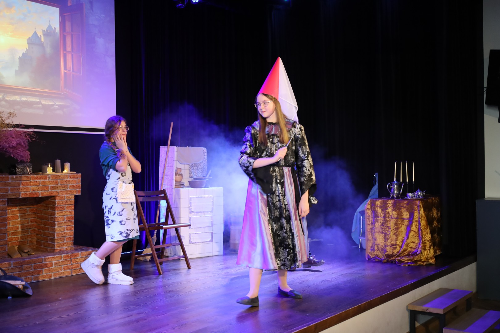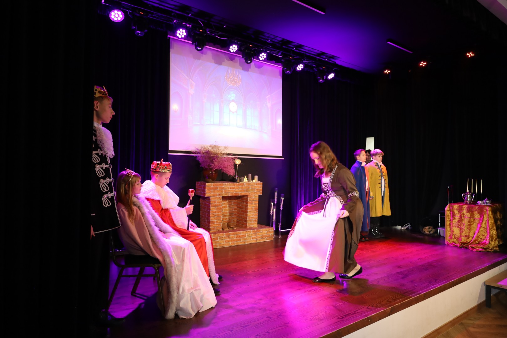 Dzięki uprzejmości p. Dyrektor OKiB w Moszczenicy spektakl mógł zostać zaprezentowany w Domu Młodzieży na scenie z kurtyną. Światła i inne efekty specjalne pozwoliły na to, by przedstawienie było jeszcze bardziej widowiskowe. Uczniowie (uczestnicy zajęć teatralnych) mogli poczuć się jak prawdziwi aktorzy.