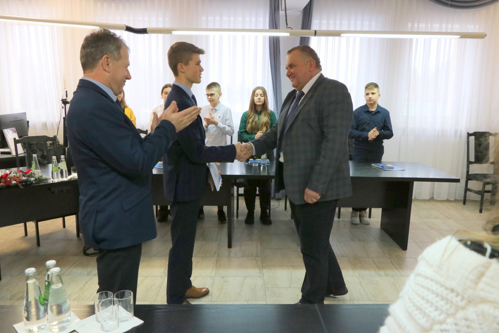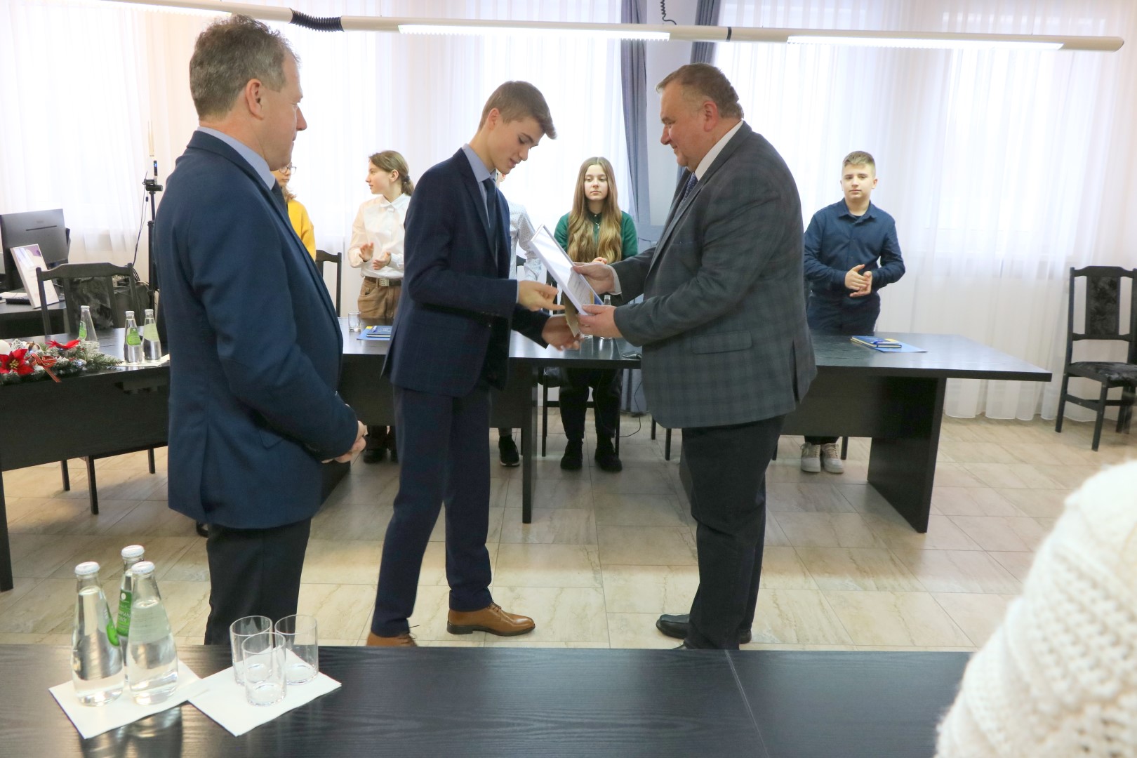 Na zakończenie sesji Pan Wójt i Kamil Jędrzejowski podziękowali uroczyście Dyrektorowi Zespołu Szkół w Moszczenicy Panu Witoldowi Bogdanowi za jego wkład pracy i dziesięcioletnią opiekę nad Młodzieżową Radą Gminy I-V kadencji.