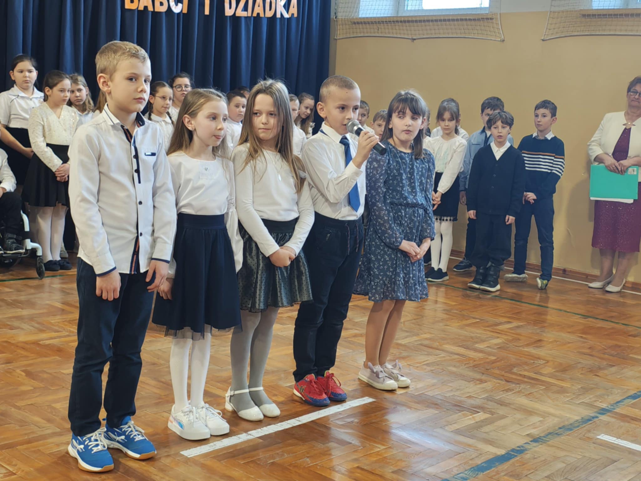 Każdego roku w styczniu pamiętamy o naszych babciach i dziadkach. Z tej to właśnie okazji dzieci klas drugich a i b 17 stycznia 2025r. gościły swoje babcie oraz dziadków. Uczniowie recytowali wiersze przeplatane wzruszającym śpiewem. Mali artyści z przejęciem prezentowali swoje umiejętności. Odegrali scenkę teatralną i zaprezentowali tańce. Dzieci wręczyły upominki swoim dziadkom. Nie zabrakło też słodkości, które przygotowali na tę uroczystość rodzice.
