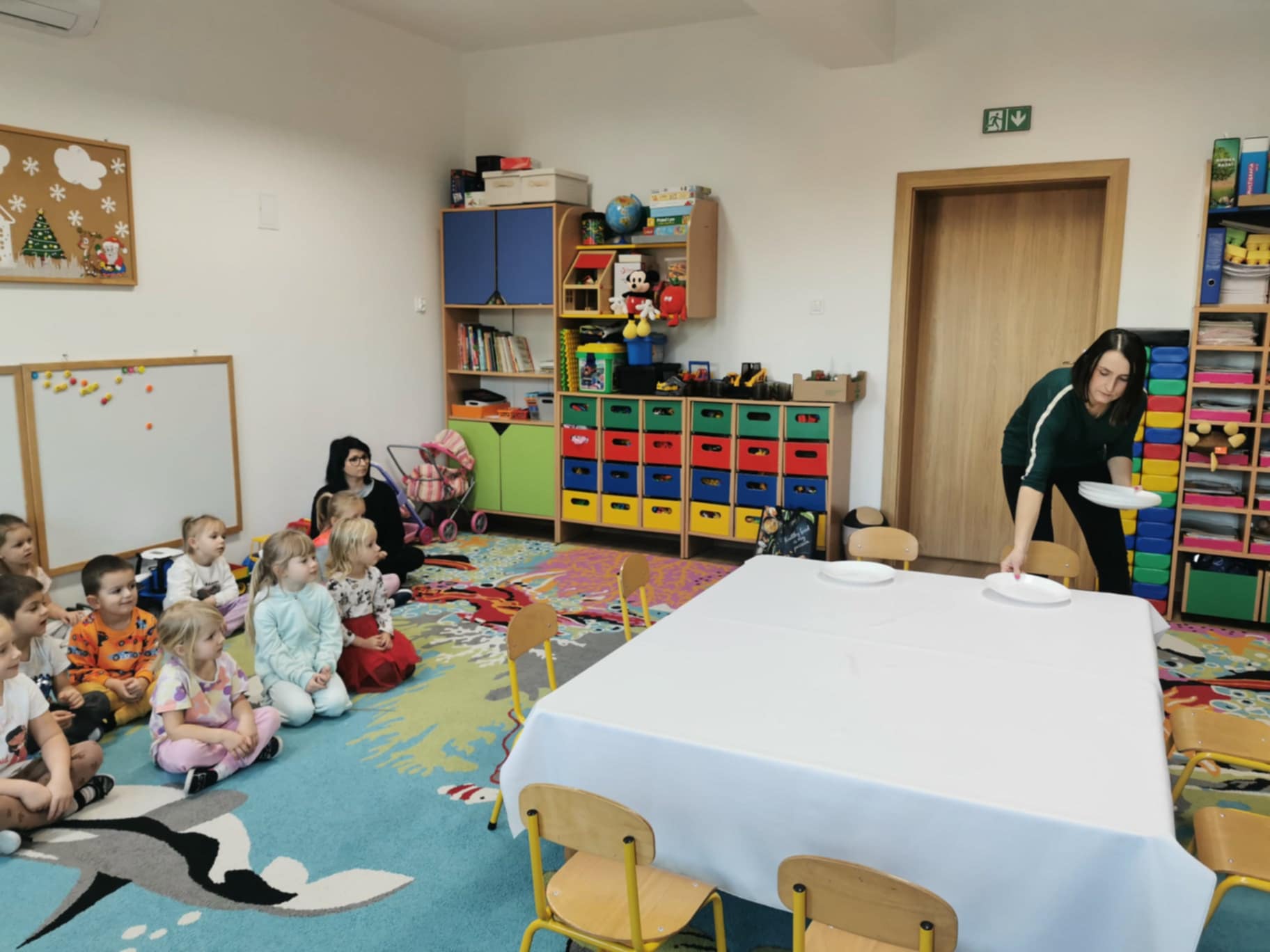 Tuż przed Świętami Bożego Narodzenia grupa Leśne Ludki uczyły się w jaki sposób prawidłowo ułożyć naczynia i sztućce na stole. Każde dziecko miało okazję samo nakryć do stołu i przekonały się, że to wcale nie jest takie proste. Dodatkowo uczyły się składania serwetki na Wigilijny stół.