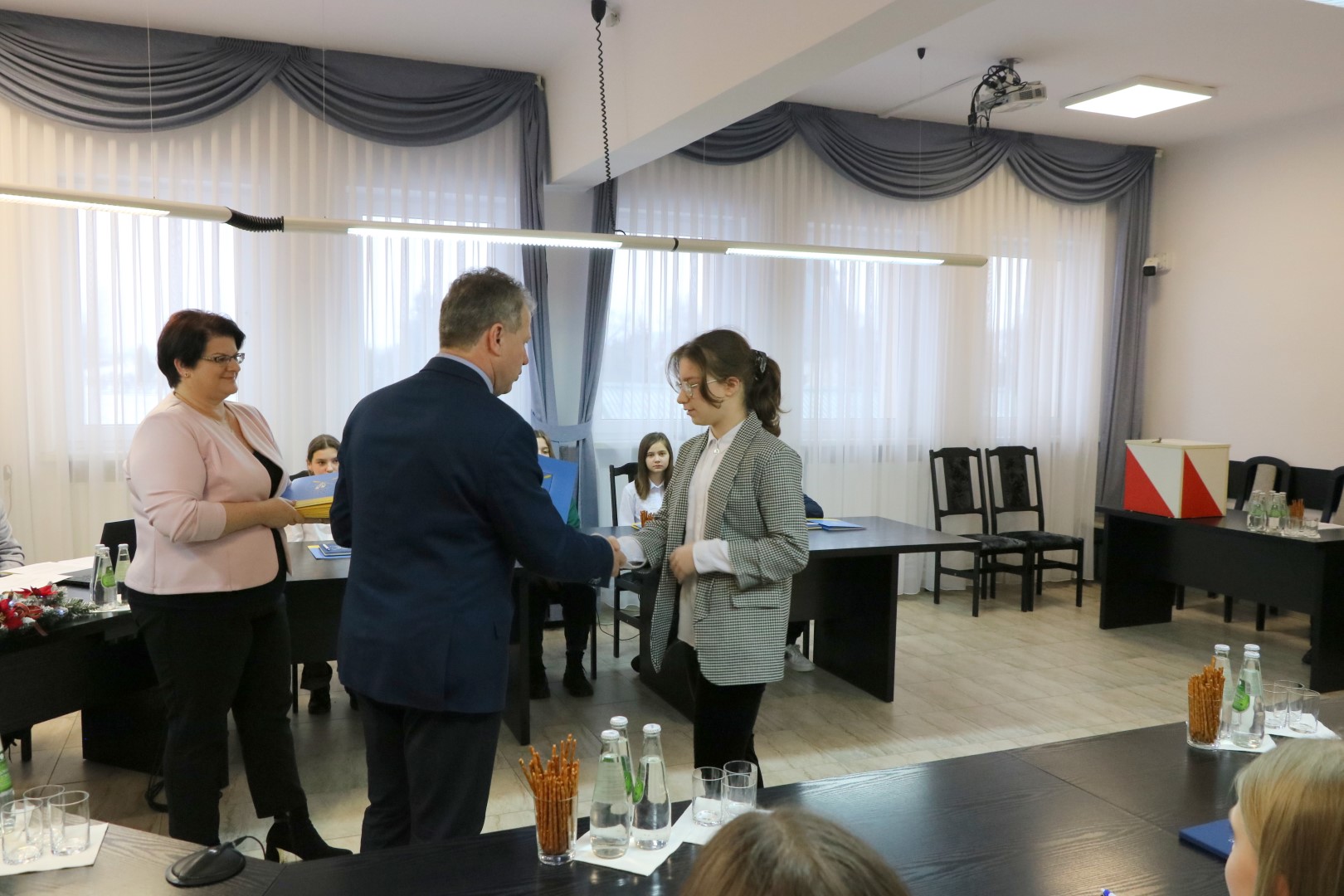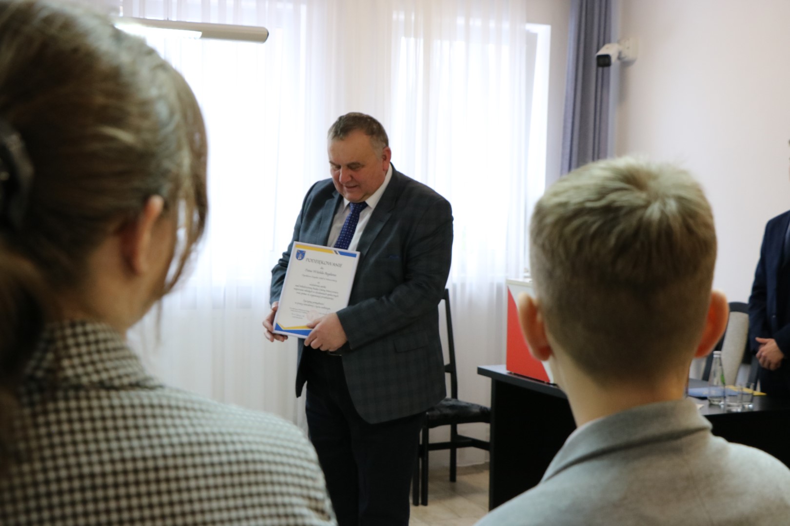 Na zakończenie sesji Pan Wójt i Kamil Jędrzejowski podziękowali uroczyście Dyrektorowi Zespołu Szkół w Moszczenicy Panu Witoldowi Bogdanowi za jego wkład pracy i dziesięcioletnią opiekę nad Młodzieżową Radą Gminy I-V kadencji.