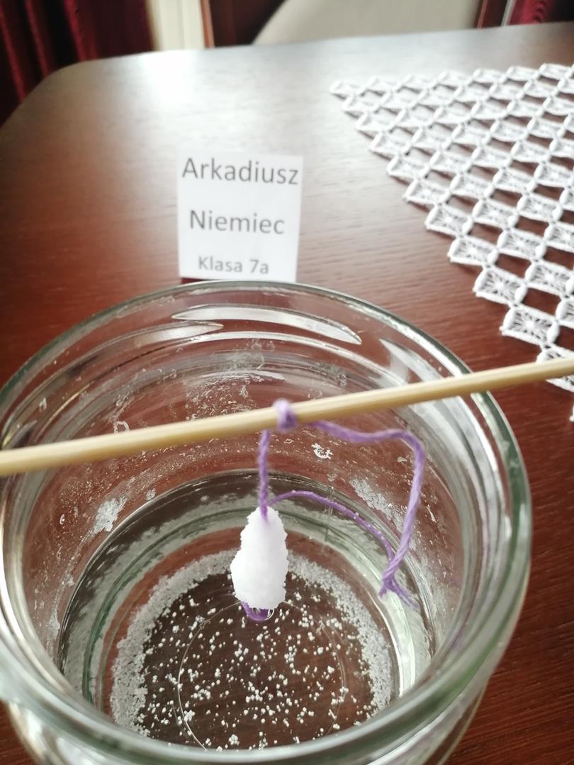 Poniżej kilka zdjęć z realizacji doświadczeń domowych z chemii - krystalizacja soli - klasy siódme.