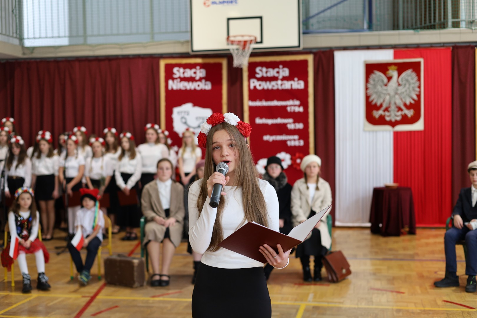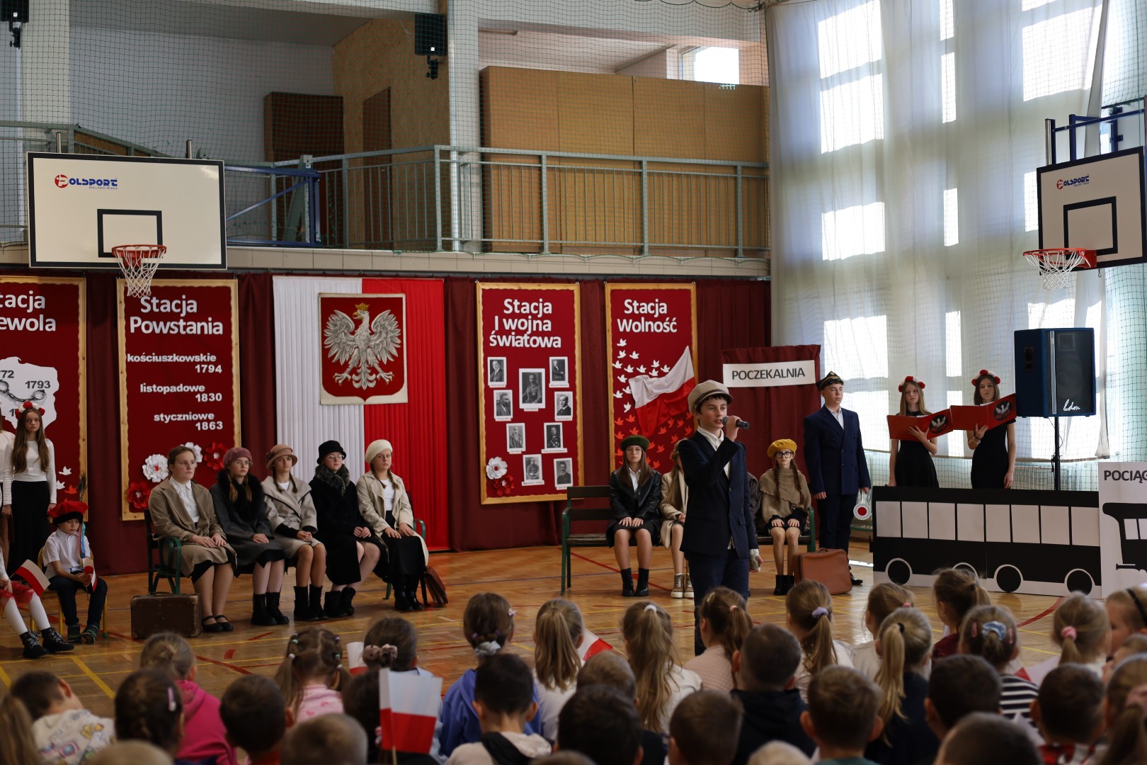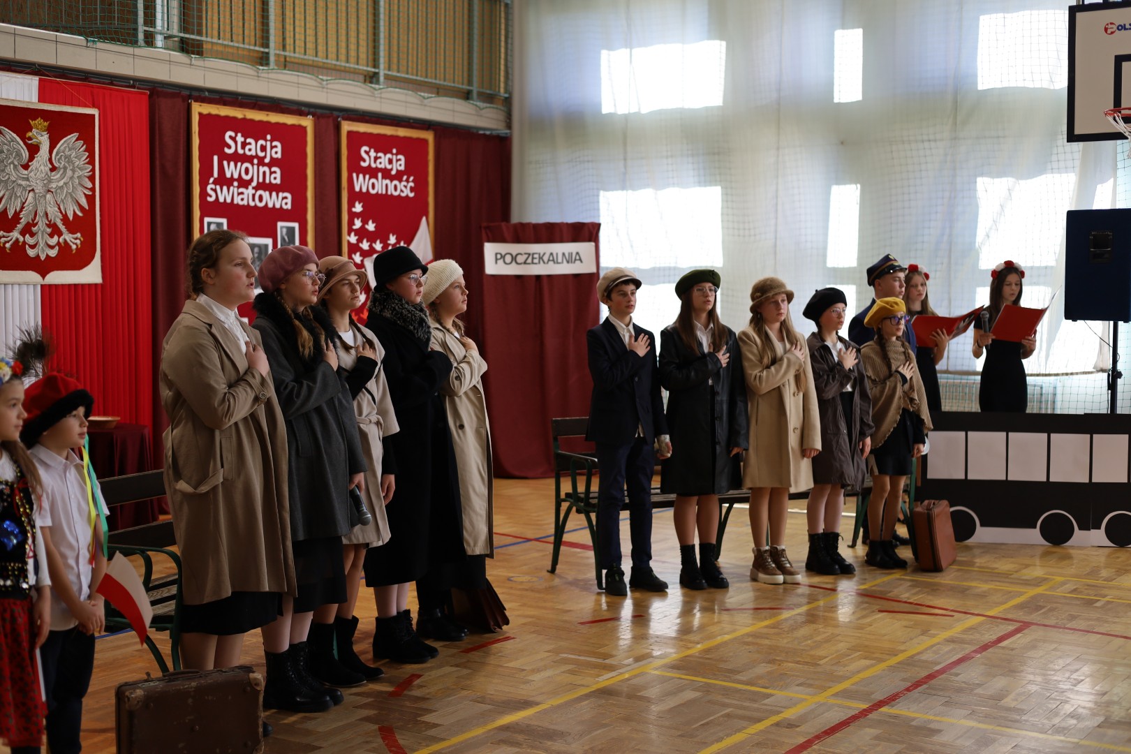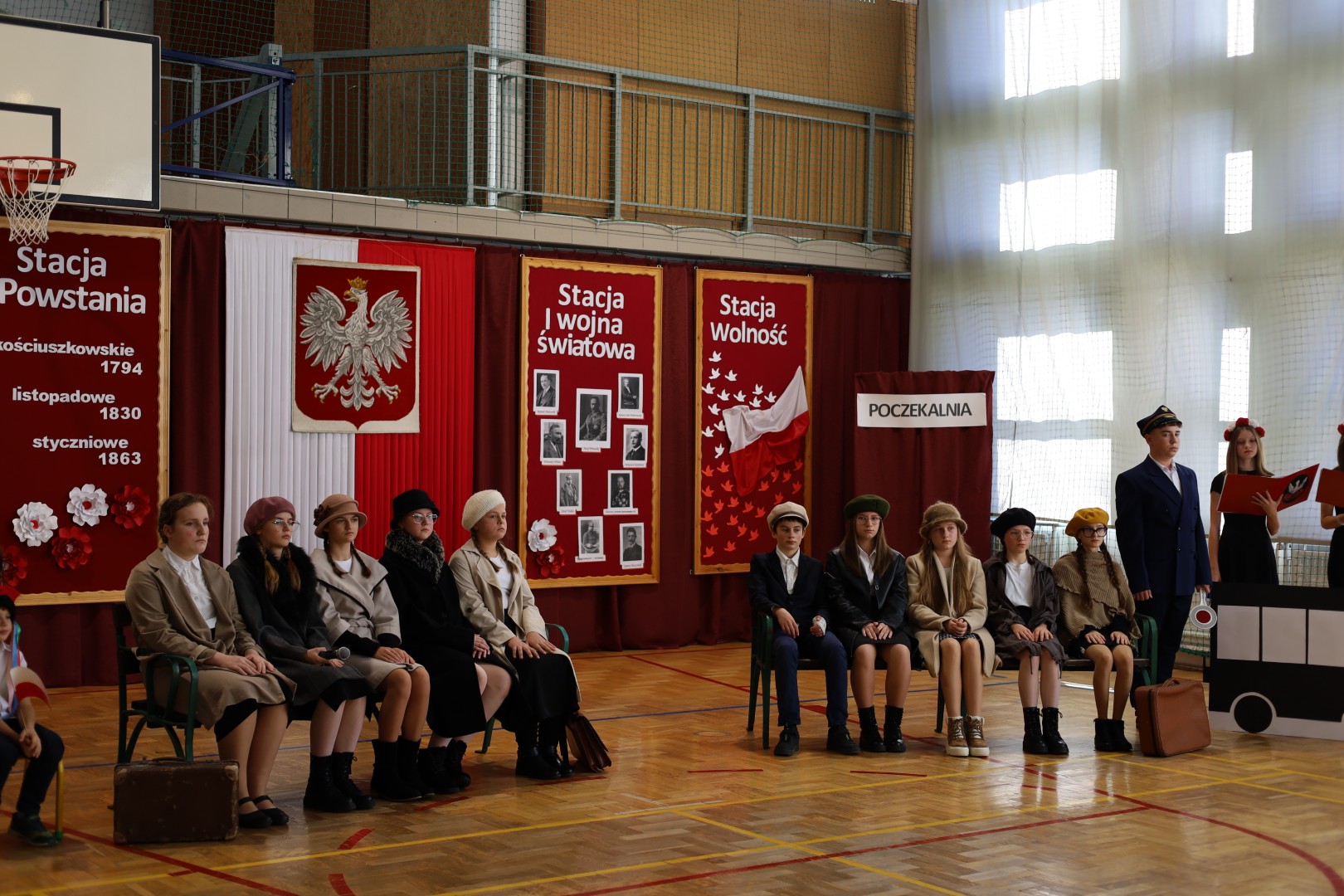 Centralnym punktem uroczystości był montaż słowno-muzyczny „Pociąg do wolności”. Przedstawienie w symboliczny sposób ukazywało drogę Polaków od niewoli, poprzez powstania, I wojnę światową, aż do odzyskania niepodległości. Podczas występu można było usłyszeć patriotyczne wiersze i pieśni, a całość dopełniła dekoracja w barwach biało-czerwonych. Uroczystość miała podniosły charakter i była wyrazem pamięci oraz szacunku dla tych, którzy walczyli o niepodległą Polskę.