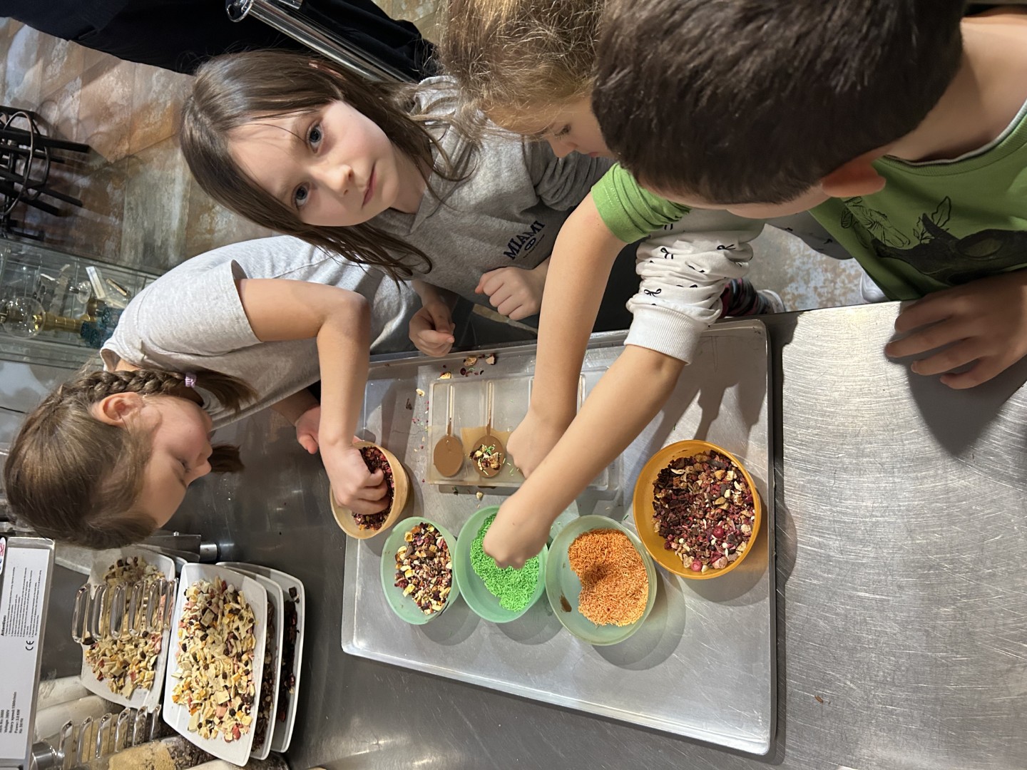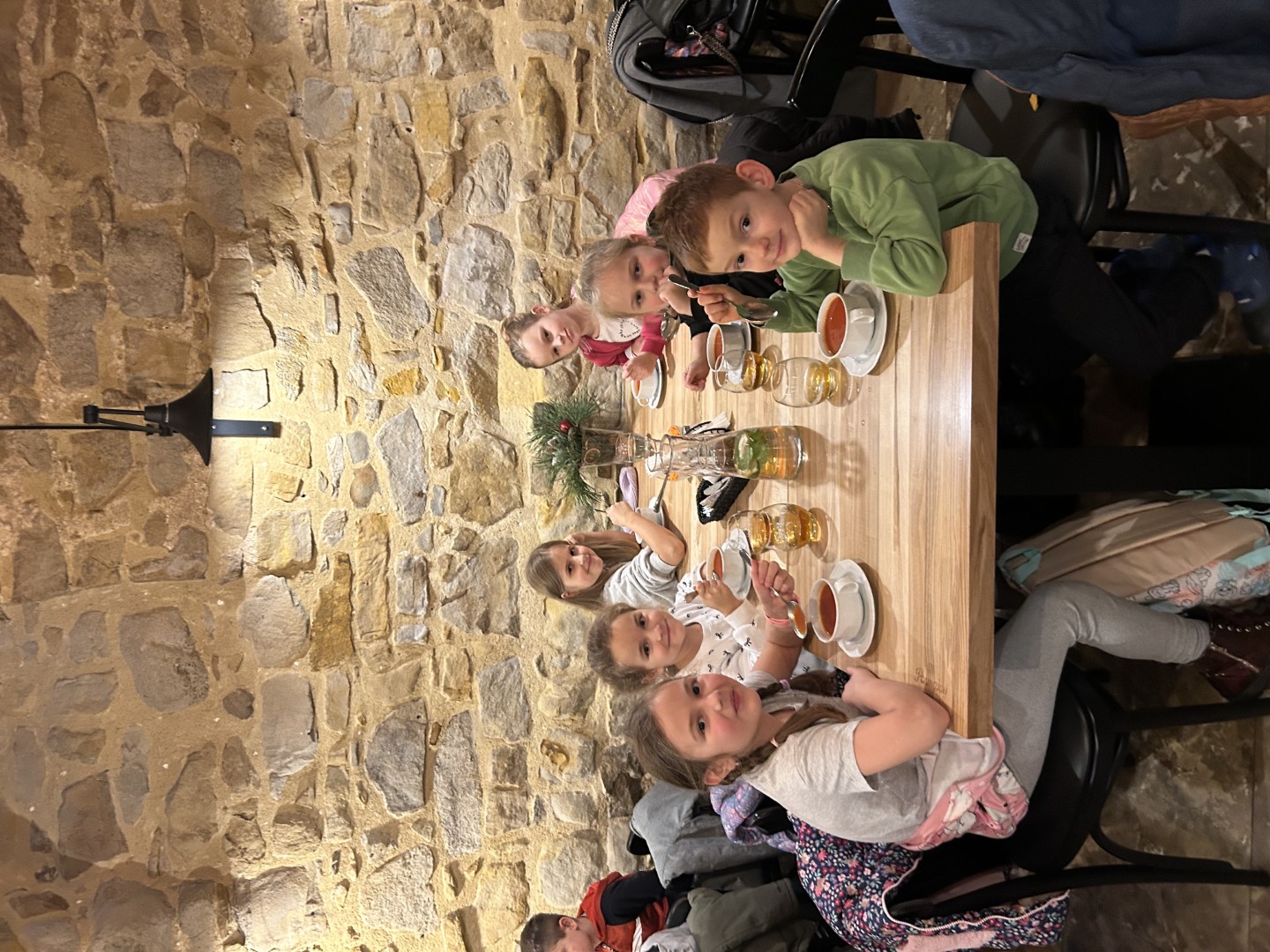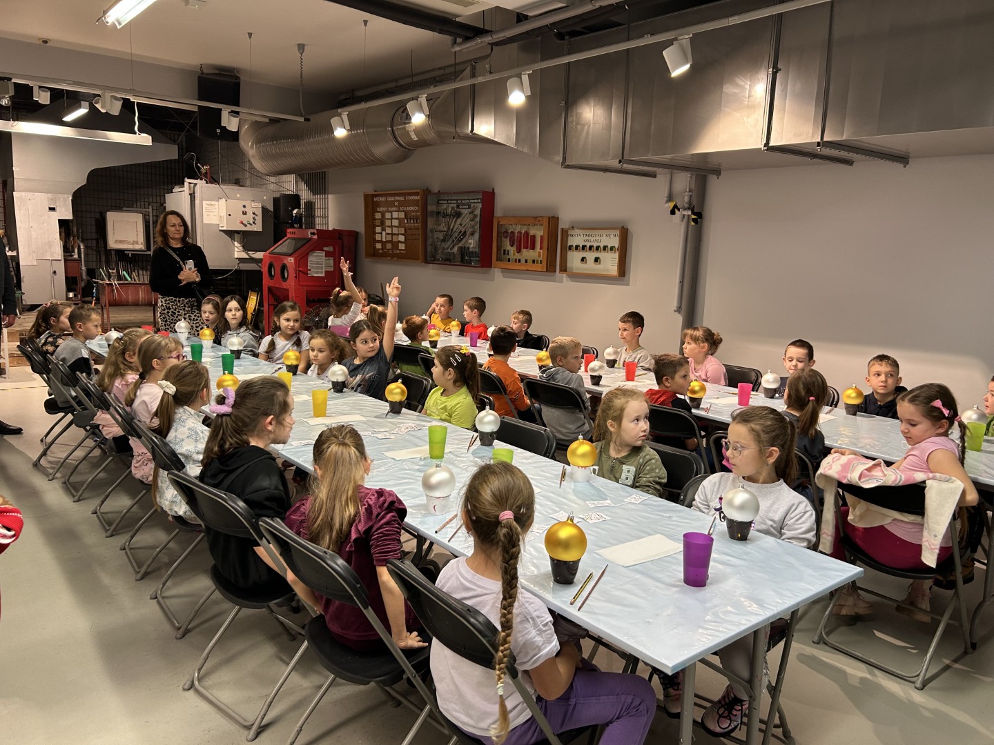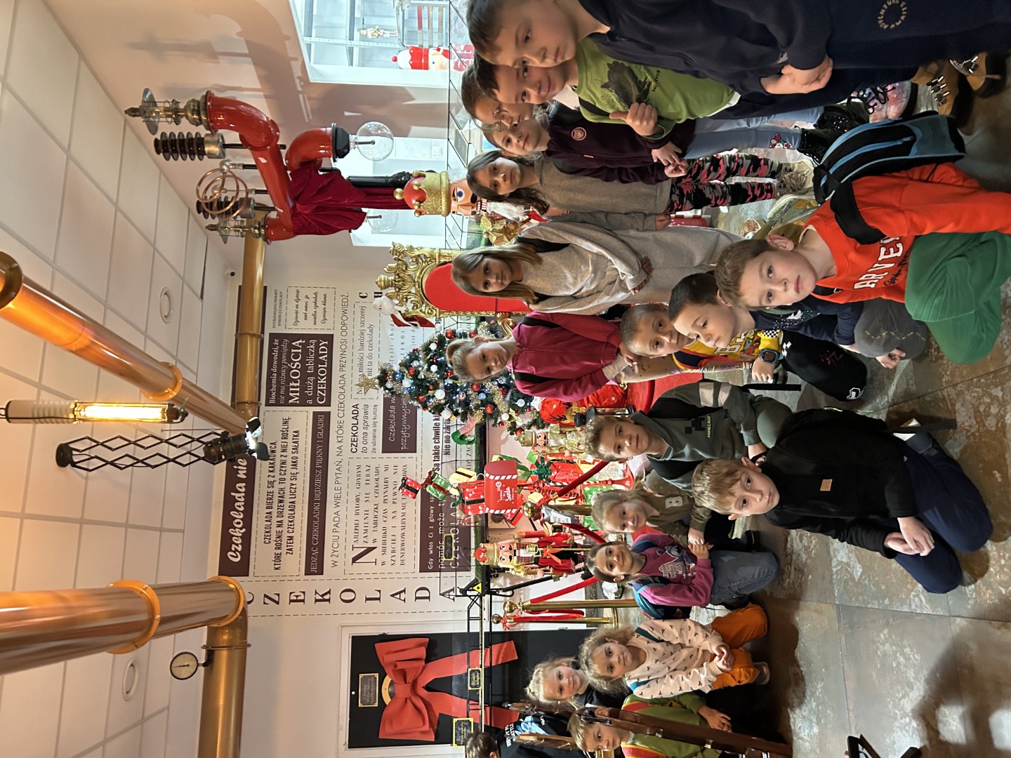 12 grudnia 2025 roku uczniowie klas pierwszych wzięli udział w wyjątkowej wycieczce edukacyjnej, która dostarczyła im wielu ciekawych doświadczeń i niezapomnianych wrażeń. Pierwszym punktem wyjazdu była Pijalnia Czekolady w Korczynie. Podczas wizyty w Pijalni dzieci poznały historię powstawania czekolady – od ziarenka kakaowca aż po gotowy produkt. Uczniowie mieli okazję degustować różne rodzaje czekolady oraz uczestniczyć w warsztatach, podczas których samodzielnie wykonywali czekoladę i czekoladowe lizaki. Każdy uczestnik zabrał własnoręcznie przygotowane słodkości do domu.