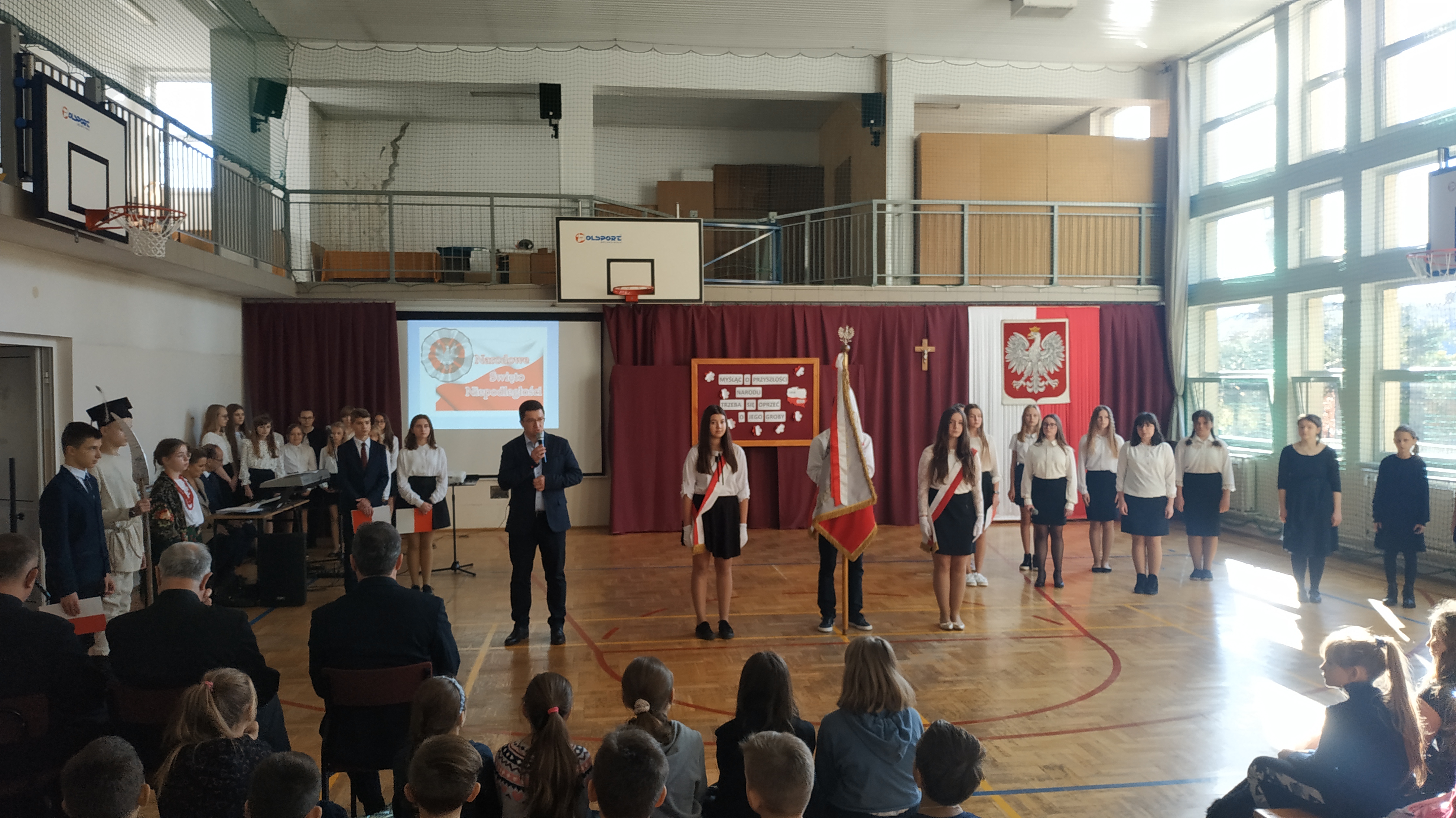W akademii wzięli udział uczniowie i nauczyciele Szkoły, Wicedyrektor Przemysław Potok oraz zaproszeni goście Wójt Gminy Moszczenica Jerzy Wałęga, ksiądz prałat Tadeusz Machał i ksiądz proboszcz Piotr Bodziony.