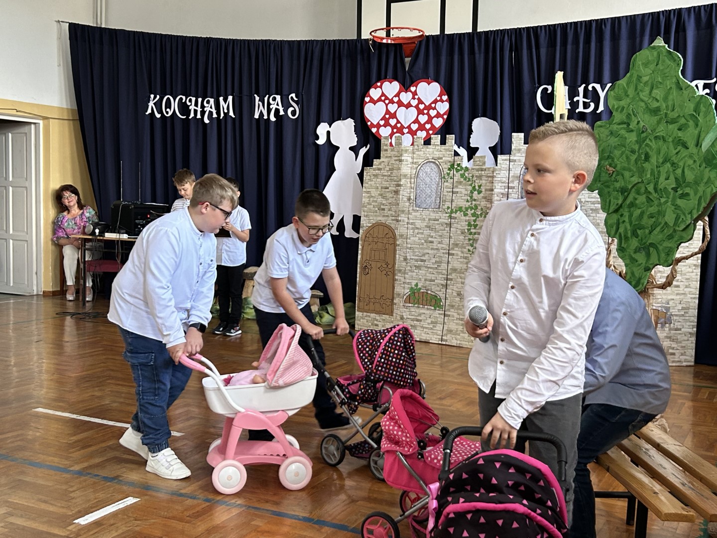 Dnia 6 czerwca 2024 roku w naszej szkole odbył się Dzień Rodziny. Uczniowie klas trzecich przygotowali część artystyczną, podczas której śpiewali piosenki i recytowali wiersze. Klasa IIIb przygotowała przedstawienie pt ,,Szewczyk Dratewka”, po czym klasa IIIa przedstawiła humorystyczną scenkę o rodzinie. Następnie obydwie klasy zaprezentowały tańce. Na zakończenie uczniowie złożyli swoim rodzicom życzenia oraz wręczyli upominki. Po części artystycznej wszyscy zebrani wzięli udział w słodkim poczęstunku.