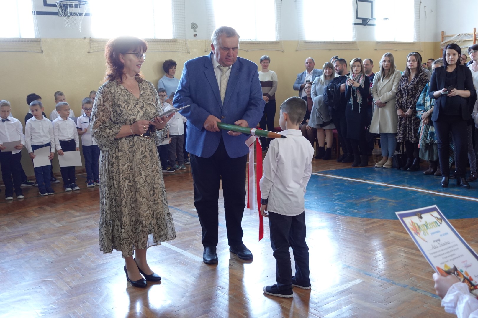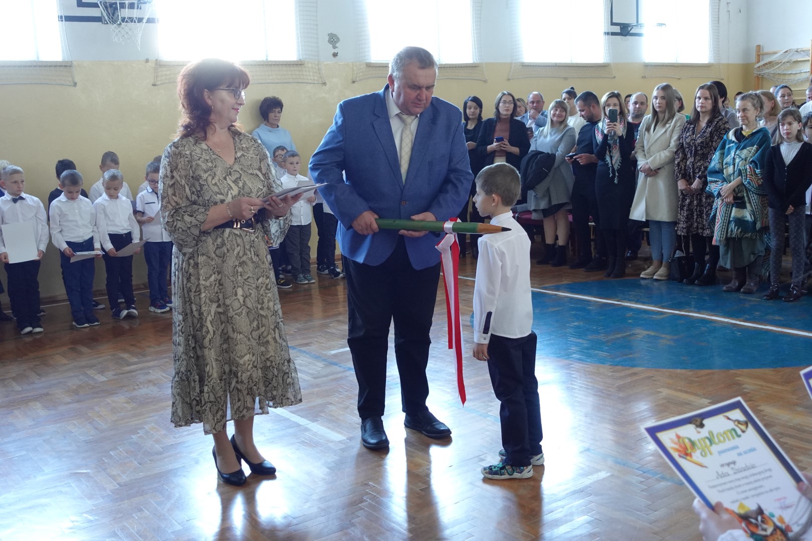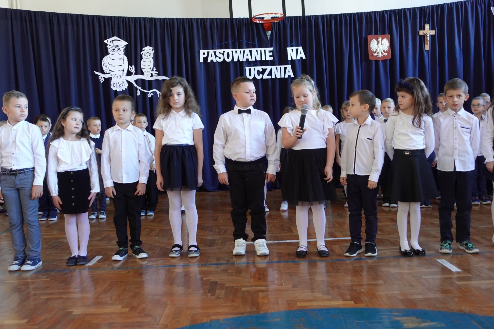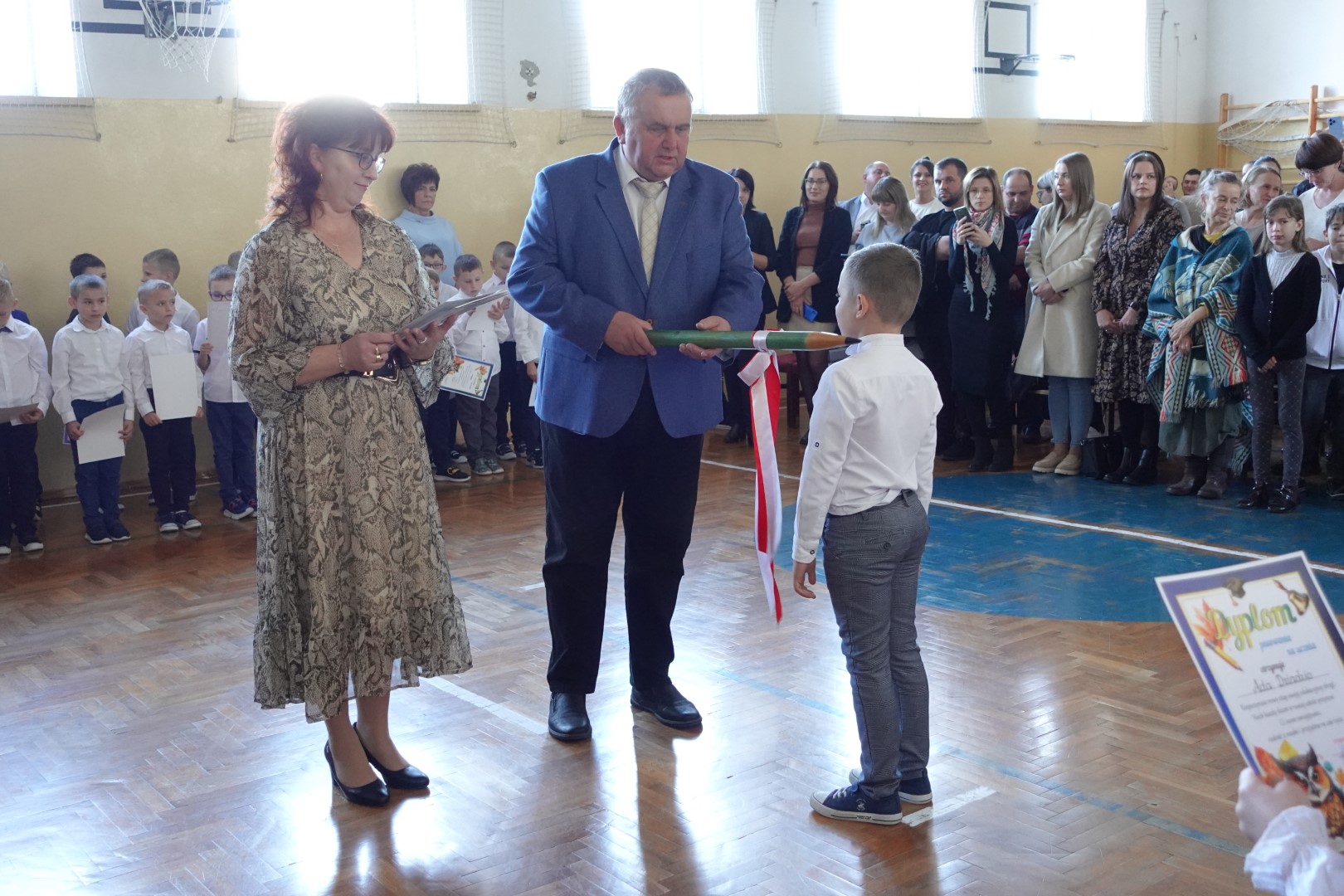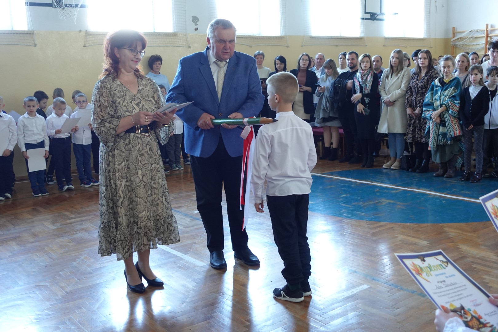 25 października 2024r. w naszej szkole odbyła się uroczystość Pasowania na Ucznia i Czytelnika. W trakcie ceremonii pierwszoklasiści złożyli uroczyste ślubowanie przy sztandarze szkoły, co stanowiło ważny moment w ich edukacyjnej podróży. Pan Dyrektor Witold Bogdan dokonał aktu pasowania, co było dla dzieci bardzo emocjonującym przeżyciem. Uczniowie zaprezentowali swoje talenty, recytując wiersze oraz śpiewając piosenki. Pierwszoklasiści głośno i z przekonaniem przyrzekały być dobrymi i pilnymi uczniami oraz rzetelnie wypełniać swoje obowiązki o czym przypominać im będą otrzymane dyplomy. Po tej ceremonii nastąpiło pasowanie na czytelnika , który dokonała pani Dorota Kozioł. Następnie uczniowie otrzymali pamiątkowe książeczki. Rodzice zdecydowali, że kolejnym prezentem z okazji pasowania będzie wyjazd do kina, który nastąpi już niebawem - 19 listopada 2024r. Wszystkim pierwszoklasistom w tak ważnym dla nich dniu życzymy wielu sukcesów na nowej drodze obowiązków szkolnych