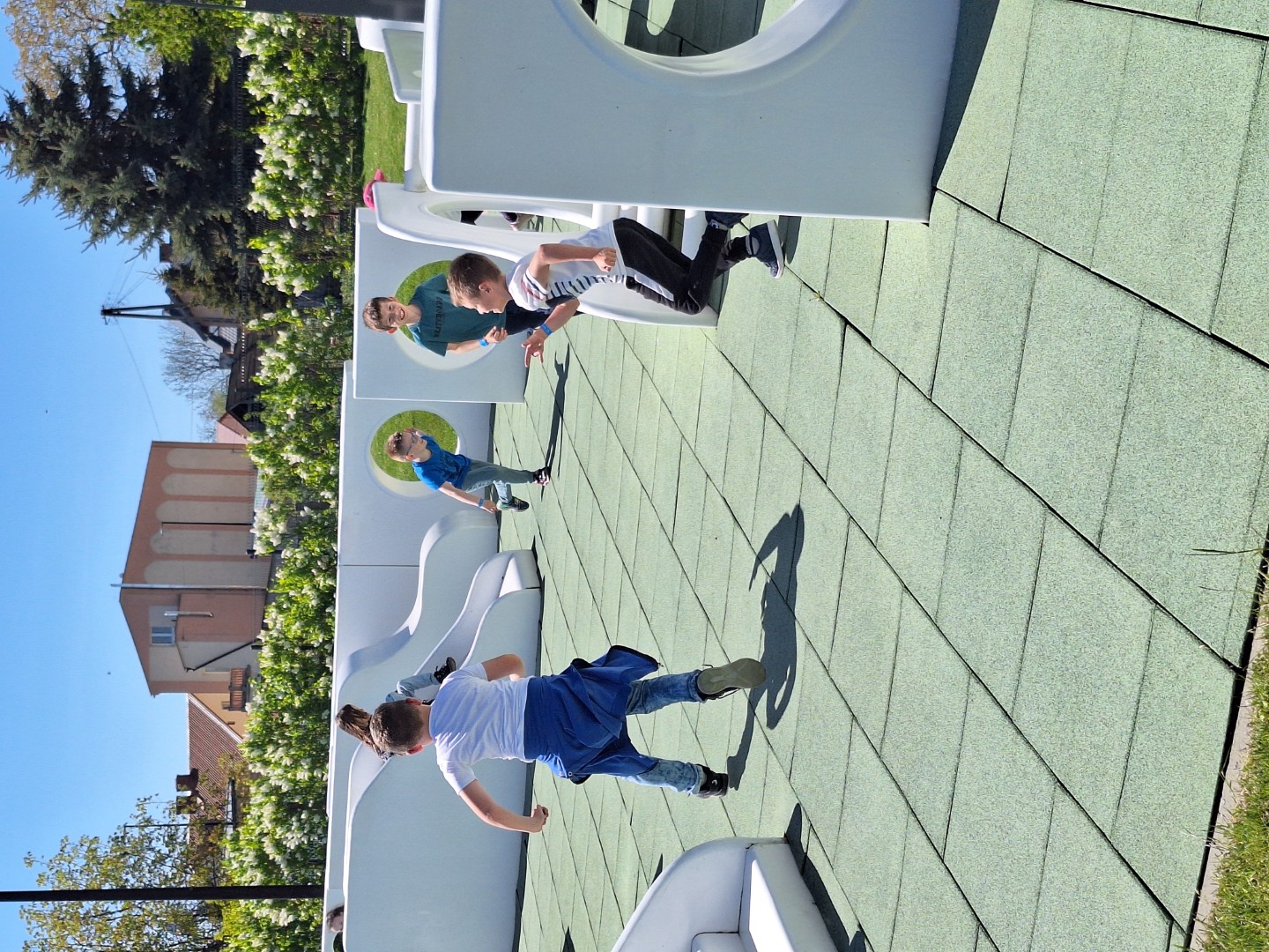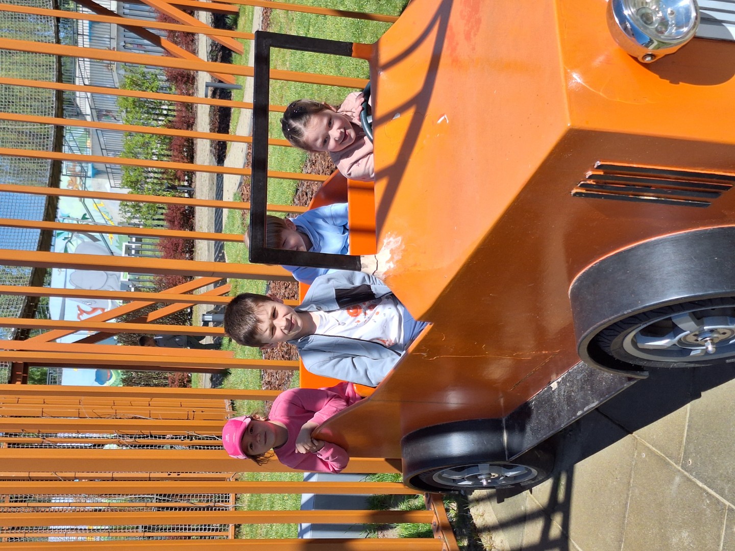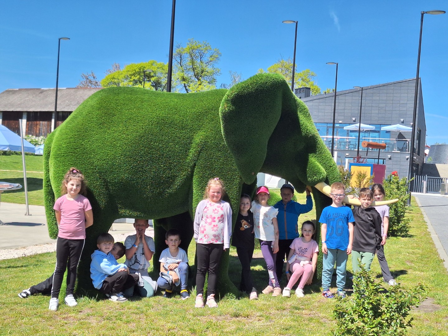 28 kwietnia 2025r. uczniowie z klas Ia i Ib byli na wycieczce w Pacanowie. Uczestniczyli w warsztatach "Co w trawie piszczy..." obserwowali i poszukiwali na łące owadów oraz sami budowali domek dla pszczoły murarki, które zabrali ze sobą do domu. Poznali ciekawostki dotyczące zmysłów, wyglądu i życia owadów, które żyją w najbliższym otoczeniu. Następnie zwiedzali wystawę "Bajkowy Świat" - to unikalna ekspozycja, łącząca najnowsze zdobycze technik multimedialnych z tradycyjnymi eksponatami muzealnymi. To stworzona specjalnie z myślą o dzieciach wspólna podróż przez baśniowe krainy – pełna obrazów, dźwięków, barw i zaskoczeń. W tej przygodzie pośrednikami między światem bajki a rzeczywistością byli przewodnicy: Dzwoneczek, Czerwony Kapturek oraz Królewna Śnieżka. Wszystko zaczęło się w Bajkowym Przedpokoju, potem zdarzenia nabierały tempa, zwłaszcza w zaczarowanym pociągu, który porywał pasażerów do świata wyobraźni. Była to podróż przez krainy geograficzne Europy, niosąca spotkanie z zamieszkującymi je stworami. Dzięki temu dzieci mogły zauważyć podobieństwa i różnice między baśniowymi światami różnych narodów. Z kolei w Zwierzyńcu, mogły pooglądać zwierzęta gospodarskie i hodowlane – alpaki, kuce i kozy. W kurnikach i wolierach podziwiały różnorodne ptactwo – pawie, brahmy, czubatki, kochiny, a nawet sułtany. Kolejnym punktem wycieczki był Ogród Komiksu – tu czekał na nas fantastyczny pojazd z wypraw Tytusa, Romka i A’Tomka. Wannolot, czyli trzyosobowy pojazd latająco-pływający, zbudowany na bazie wanny stalowej. Ogród kryje w sobie labirynt, w którym przewodzi geometria. Miło spędziliśmy czas na Placu Profesora Talenta, w którym nie zabrakło kreatywnych urządzeń do zabaw logicznych. To fabryka piasku z zupełnie nowym spojrzeniem na tradycyjną piaskownicę. W Ogrodzie Komiksu zobaczyliśmy trzy zielone słonie – topiary o różnych wysokościach: 2,5 m, 1,5 m, 1,15 m. Dużą radością cieszył wszystkich Ogród Legend, w którym znajdował się Park linowy z jednopoziomową trasą. To było wyzwanie dla prawdziwych śmiałków! Bardzo miło dzieci spędziły czas również w Bajkowych Wydmach – dwupoziomowym placu zabaw, a także pokonywały ściankę wspinaczkową. Wycieczka do Pacanowa to ciekawa przygoda połączona ze świetną zabawą.