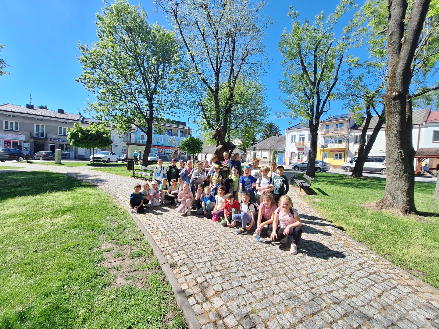 Dnia 20 maja 2025r. klasy drugie a i b wyruszyły na całodniową wycieczkę do Krakowa. Po dotarciu na miejsce pierwszym punktem programu było zwiedzanie z przewodnikiem zabytków Krakowa, a były to; Dziedziniec Zamku Królewskiego na Wawelu- najważniejszy symbol polskiej historii i kultury, Smok Wawelski, Rynek Główny- serce miasta, Sukiennice, Brama Floriańska i Barbakan. Była to dla dzieci krótka lekcja historii o dawnych wydarzeniach i postaciach historycznych takich jak; królowie i artyści, oraz o zwyczajach i tradycjach krakowskich. Dużym zainteresowaniem cieszyła się wizyta w Żywym Muzeum Obwarzanka, gdzie dzieci własnoręcznie formowały z ciasta krakowskie obwarzanki według podanej instrukcji, obserwowały cały proces ich wypieku. Każdy otrzymał przepis oraz upieczony, wykonany przez siebie obwarzanek. Około godziny 12.30 udaliśmy się na obiad do restauracji . Po sytym posiłku oglądaliśmy multimedialny seans o legendach Krakowa. Ostatnim punktem programu była wizyta w krakowskim ZOO, gdzie dzieci mogły zobaczyć egzotyczne i chronione zwierzęta, zrobić zdjęcia i kupić pamiątki. Wycieczka była pełna wrażeń i atrakcji.