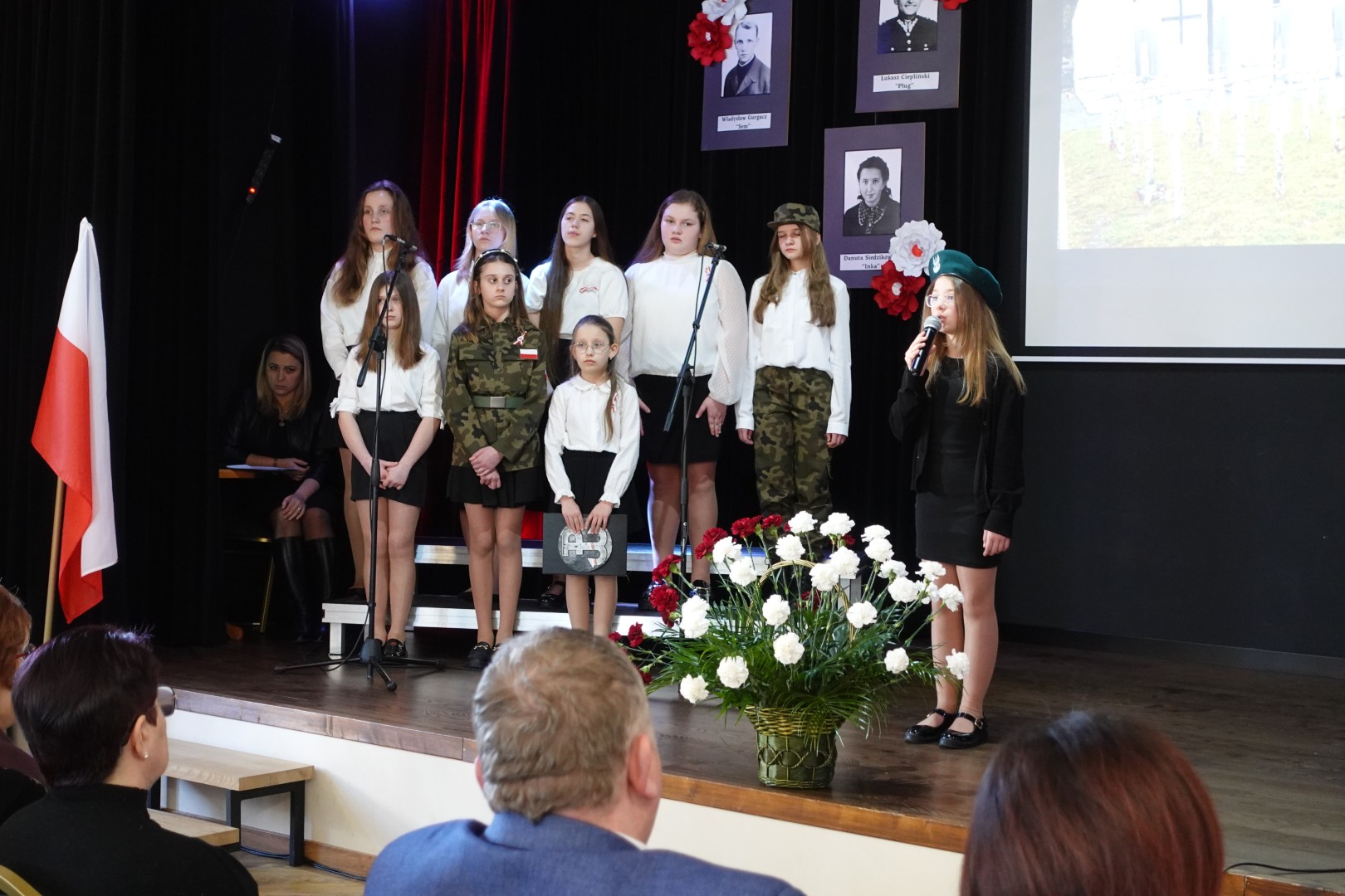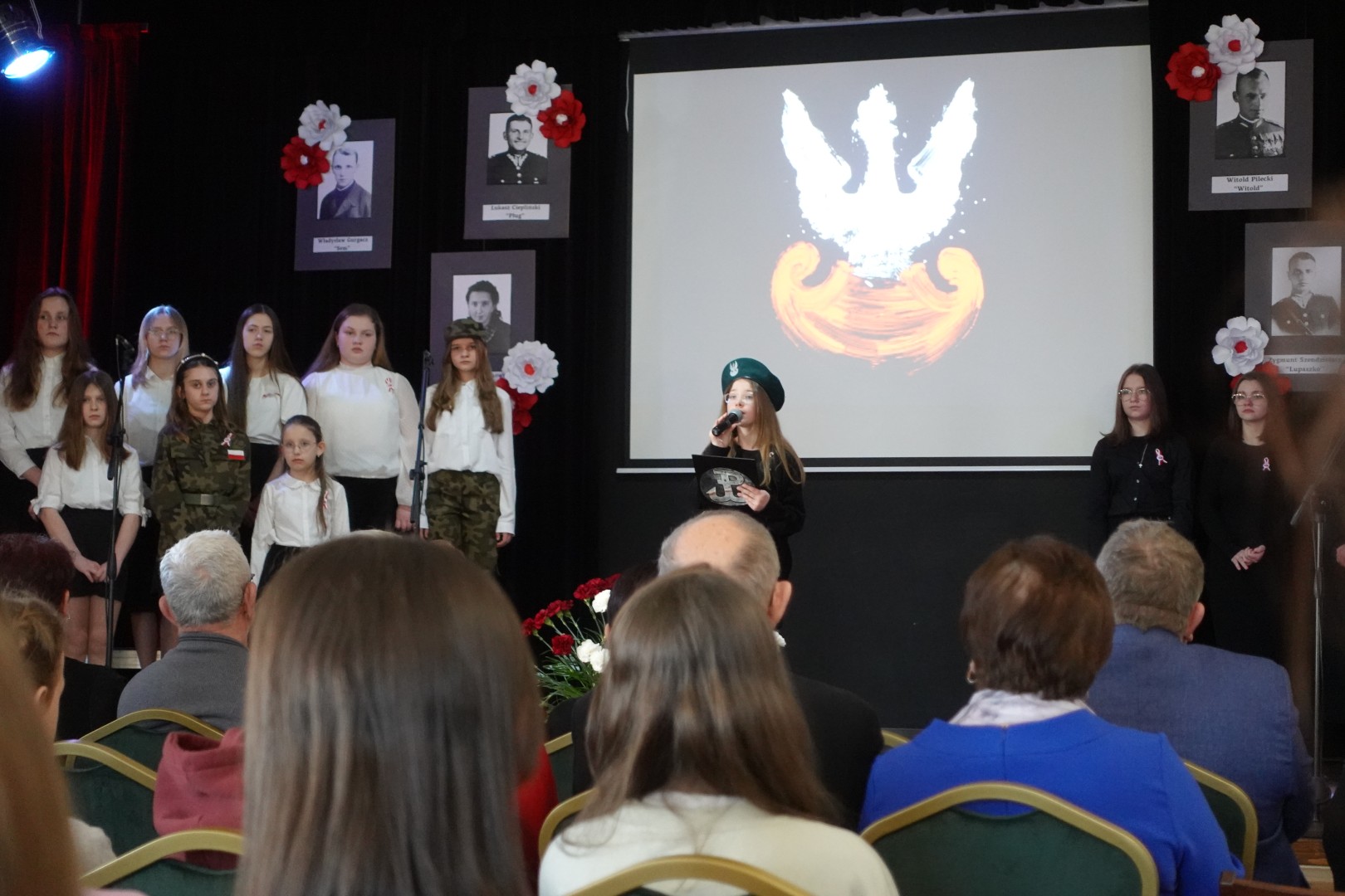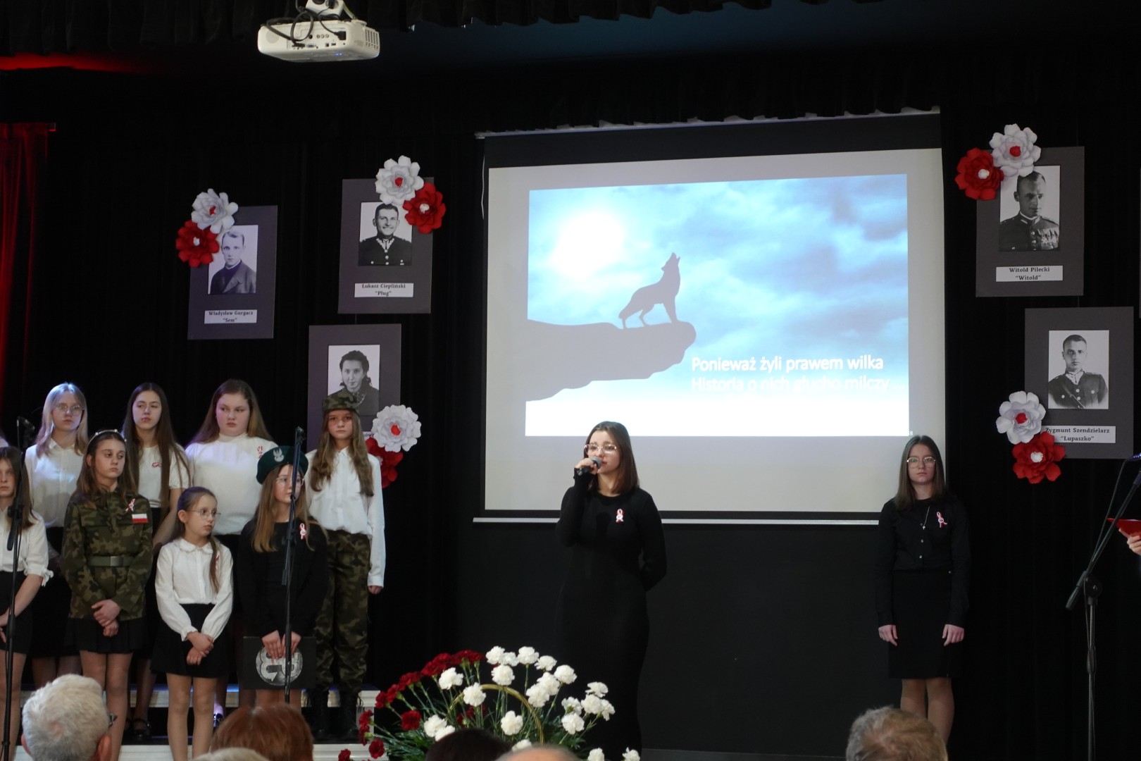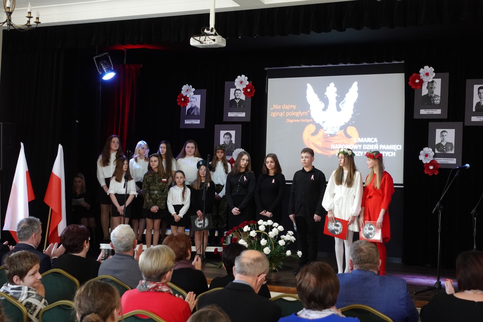 Na samym początku uczniowie naszej szkoły przedstawili przygotowany montaż słowno-muzyczny, składający się z recytacji wierszy patriotycznych oraz pieśni nawiązujących do tamtych wydarzeń. Została również przybliżona sylwetka sierżanta Józefa Franczaka - ostatniego żołnierza niezłomnego.