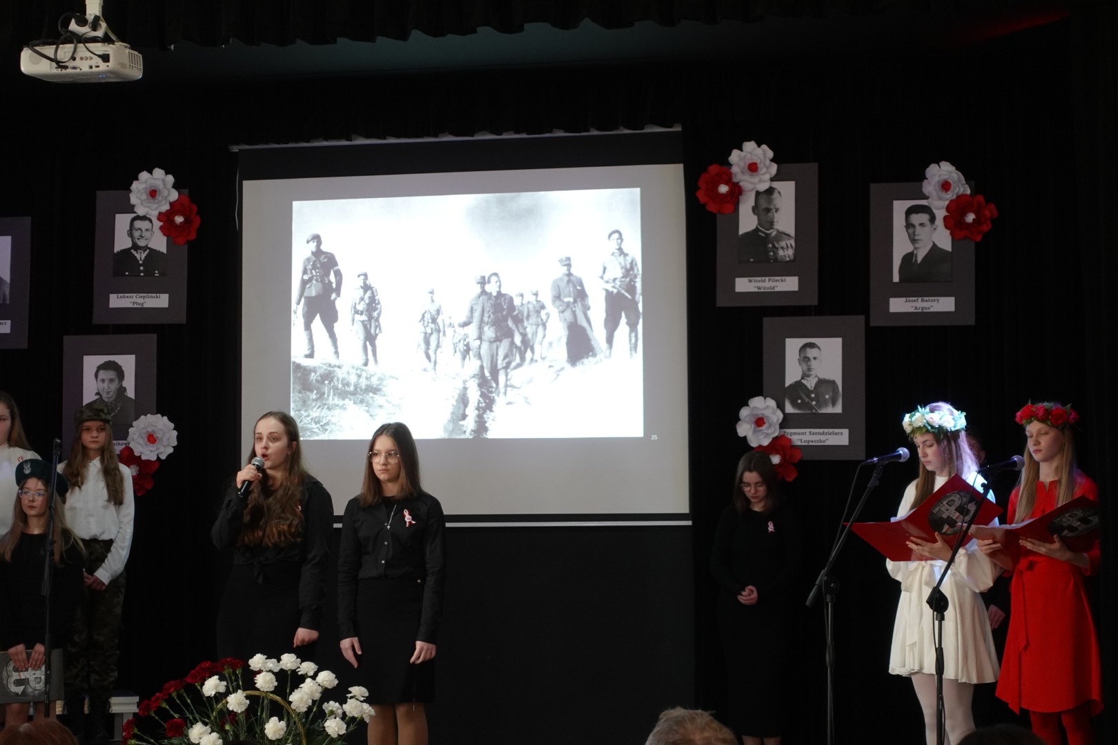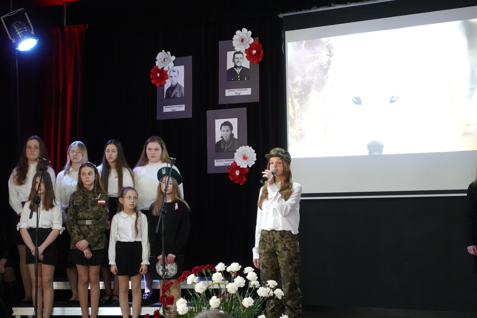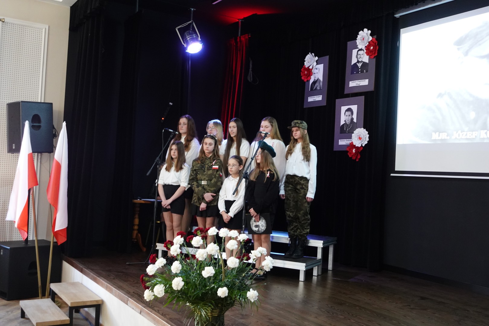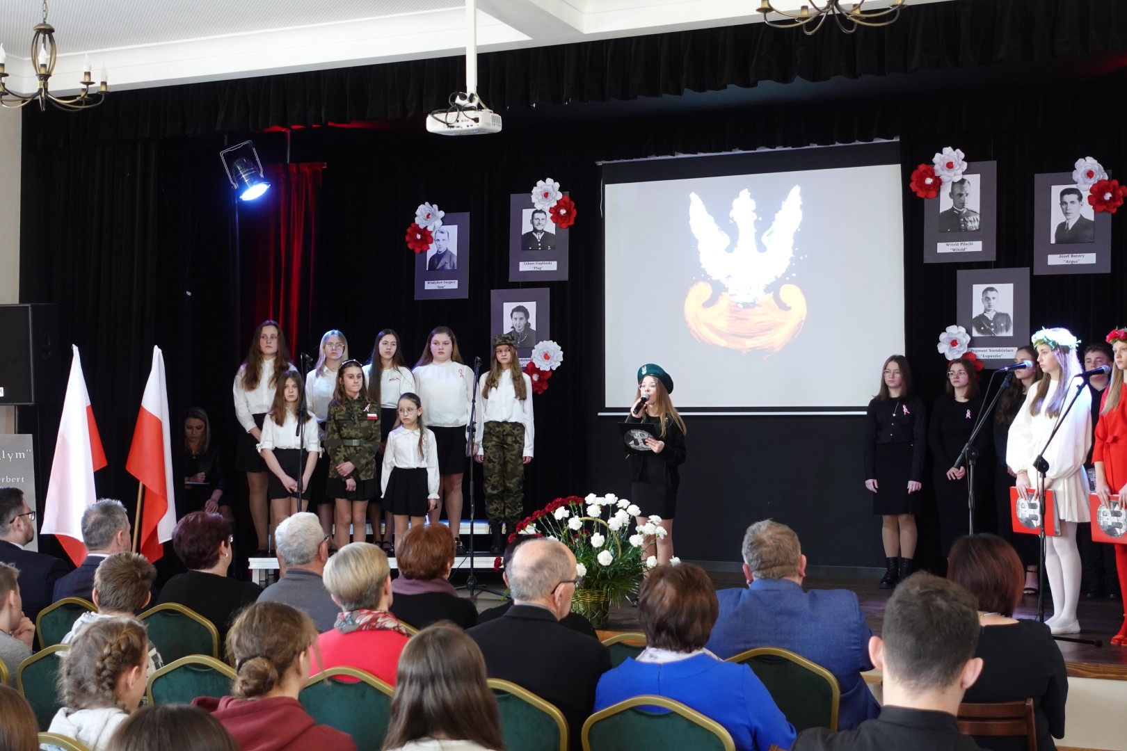 Na samym początku uczniowie naszej szkoły przedstawili przygotowany montaż słowno-muzyczny, składający się z recytacji wierszy patriotycznych oraz pieśni nawiązujących do tamtych wydarzeń. Została również przybliżona sylwetka sierżanta Józefa Franczaka - ostatniego żołnierza niezłomnego.