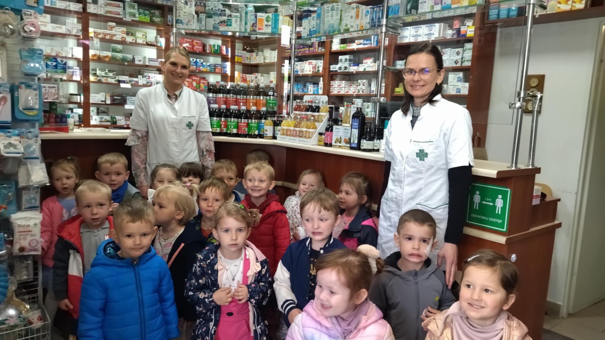 W dniu 07 maja Muchomorki udały się do apteki. Okazało się, że od środka apteka kryje wiele fascynujących miejsc i przedmiotów. Mogliśmy zobaczyć moździerz, w którym pani robiła lekarstwa na zamówienie. Zmierzyć pani farmaceutce ciśnienie oraz obserwować jak działa inhalator. Dzieci dowiedziały się również, że aby zostać farmaceutą należy być cierpliwym, bo to ciężka droga, a praca w aptece jest ważna i odpowiedzialna. Na koniec wizyty dzieci otrzymały od pań upominki.