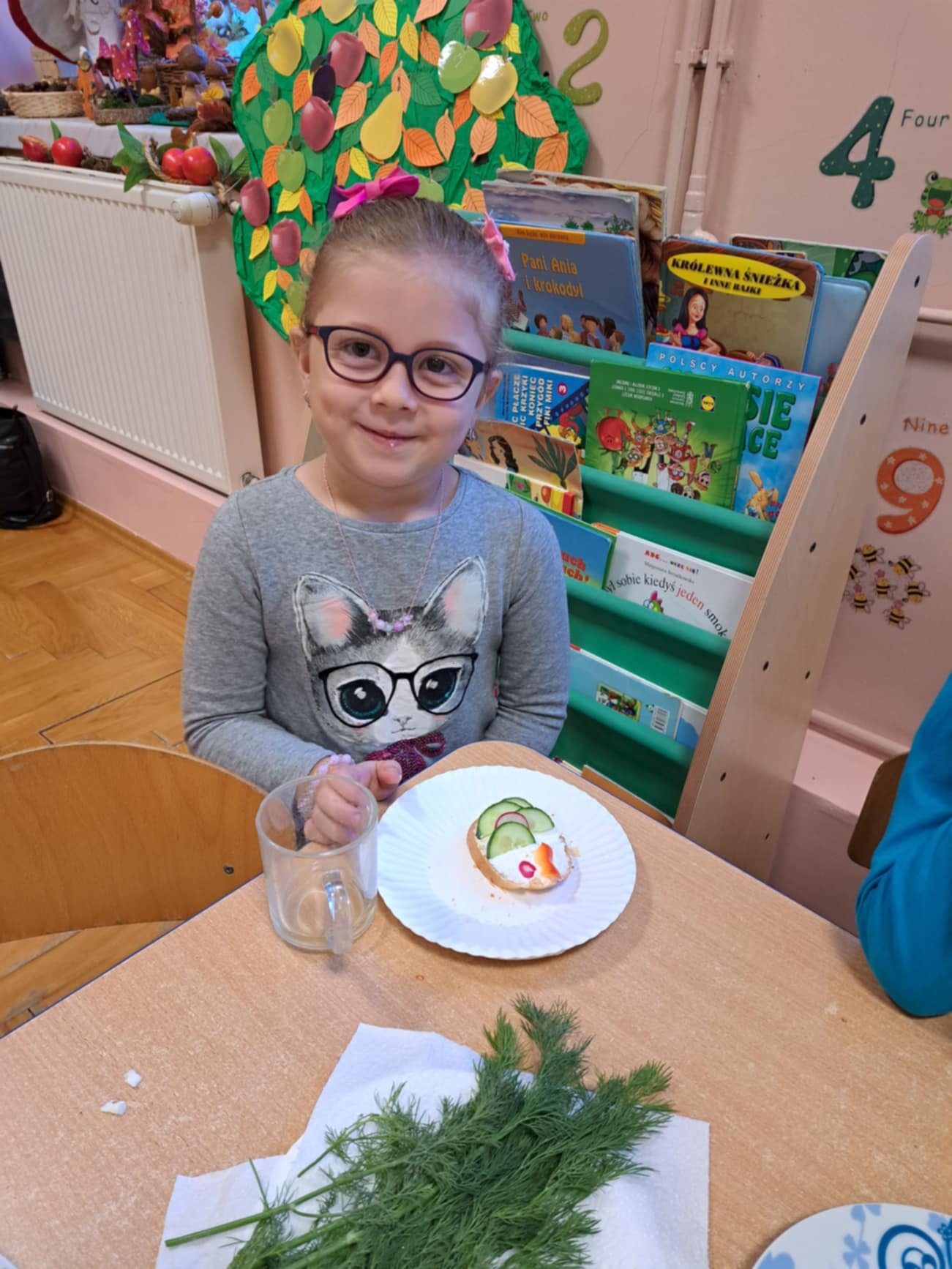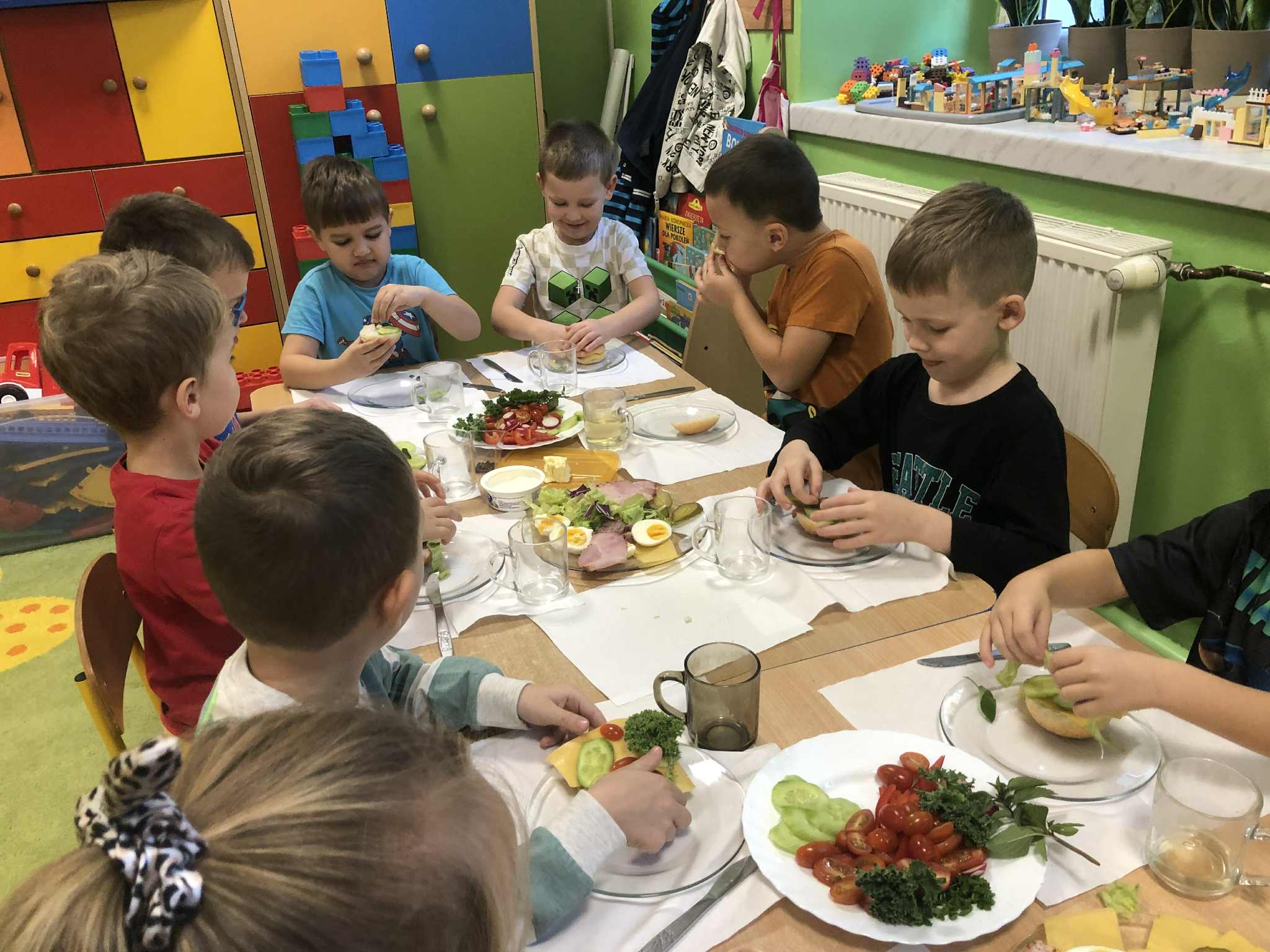Tak jak w latach ubiegłych, przedszkolaki przyłączyły się do ogólnopolskiej akcji „Śniadanie daje moc”. Dzień rozpoczął się od przypomnienia zasad zdrowego odżywiania, uświadomienia jak ważne jest dla naszego organizmu śniadanie. Dzieci przyniosły potrzebne produkty, z których wykonały zdrowe, smaczne kanapki. Wszyscy z wielkim zaangażowaniem uczestniczyli w przygotowywaniu własnego śniadanka. Wspólny posiłek był dla nas świetną zabawą, a zarazem nauką o tym - jak ważne jest codzienne, zdrowe śniadanie.