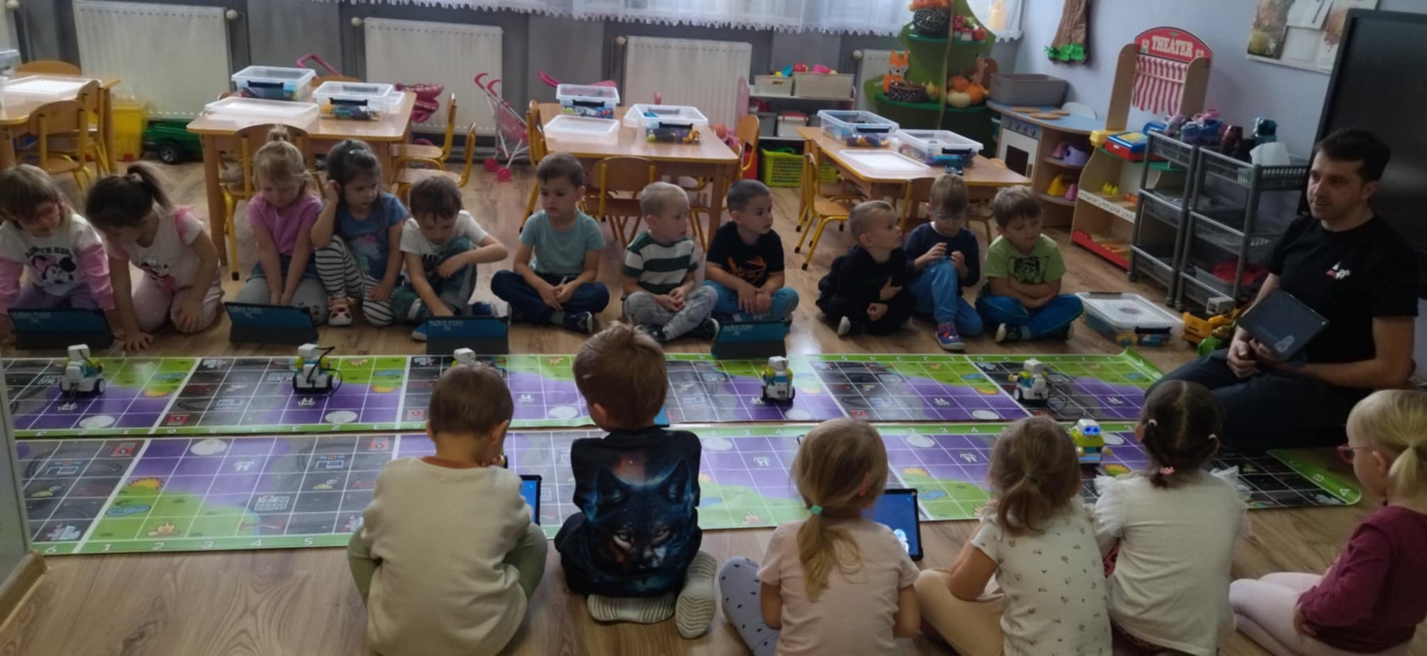 W dniu 27.10 nasze przedszkole odwiedzili: pani Ola i pan Kamil z firmy Robotyka Have Fun, którzy przeprowadzili w przedszkolu zajęcia z robotyki. Przedszkolaki miały do swojej dyspozycji klocki LEGO i tablety dzięki, którym uczyły się programowania. Z pomocą wszelkiego rodzaju edukacyjnych klocków LEGO dostosowanych do wieku uczestników, dzieci uczyły się konstruowania i składania najprawdziwszych robotów oraz budowli.