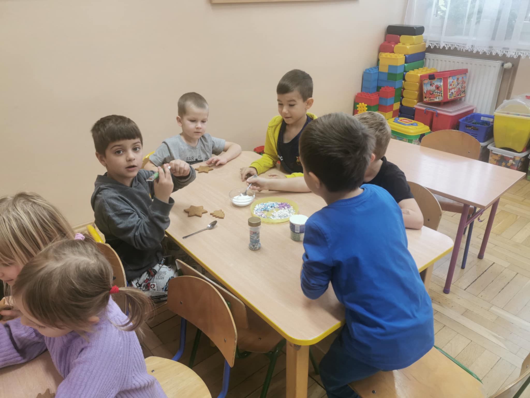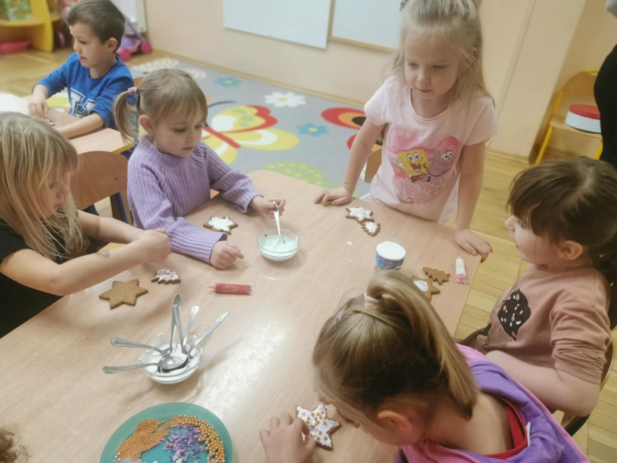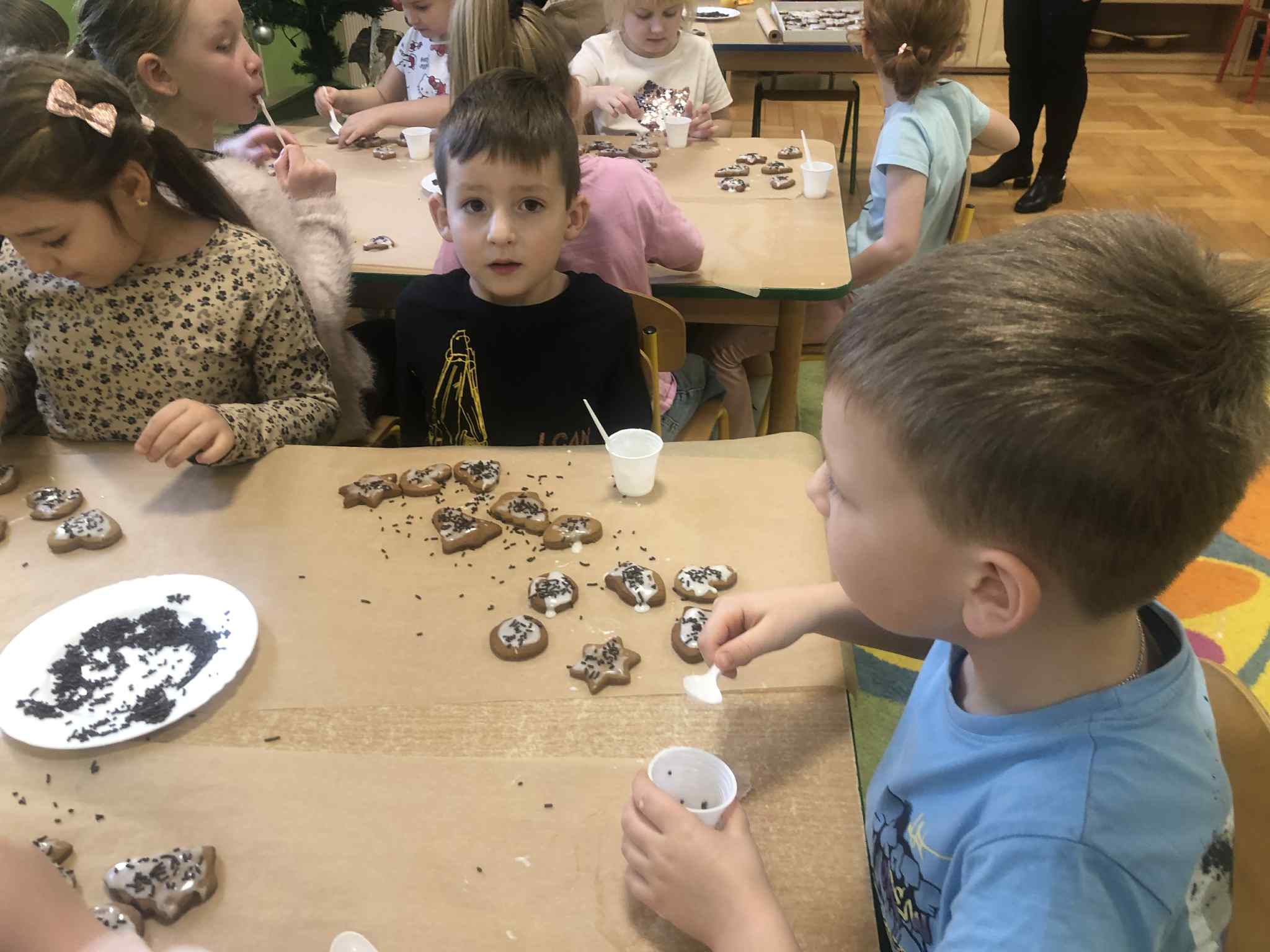 Świąteczne przygotowania w naszym przedszkolu ruszyły pełną parą! W piątek 12 grudnia mali cukiernicy, przy wsparciu nauczycieli, z ogromnym zaangażowaniem piekli i ozdabiali aromatyczne pierniczki. To był dzień pełen radości, wspólnej pracy.