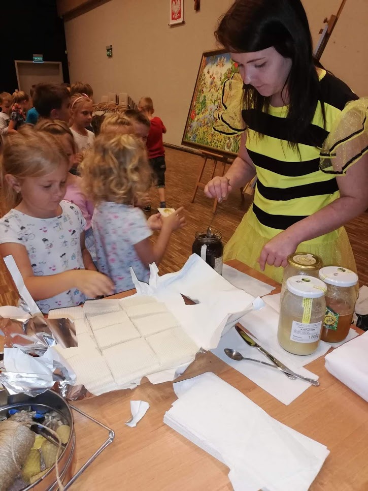 W Pacanowie przedszkolaki zwiedzały wystawę "W baśniowej Krainie", "podróżowały" tajemniczym pociągiem, rozwiązywały zagadki związane ze światem baśni i bajek. Nasze straszaki wzięły udział w warsztatach "Tajemnica Łyżeczki miodu": poznawały życie pszczół, budowały ul, kosztowały prawdziwego pyłku kwiatowego oraz różnych rodzajów miodu, wykonywały świece z pszczelego wosku. Dodatkowa atrakcją był seans filmowy "MINIONKI" w kinie Europejskiego Centrum Bajki.