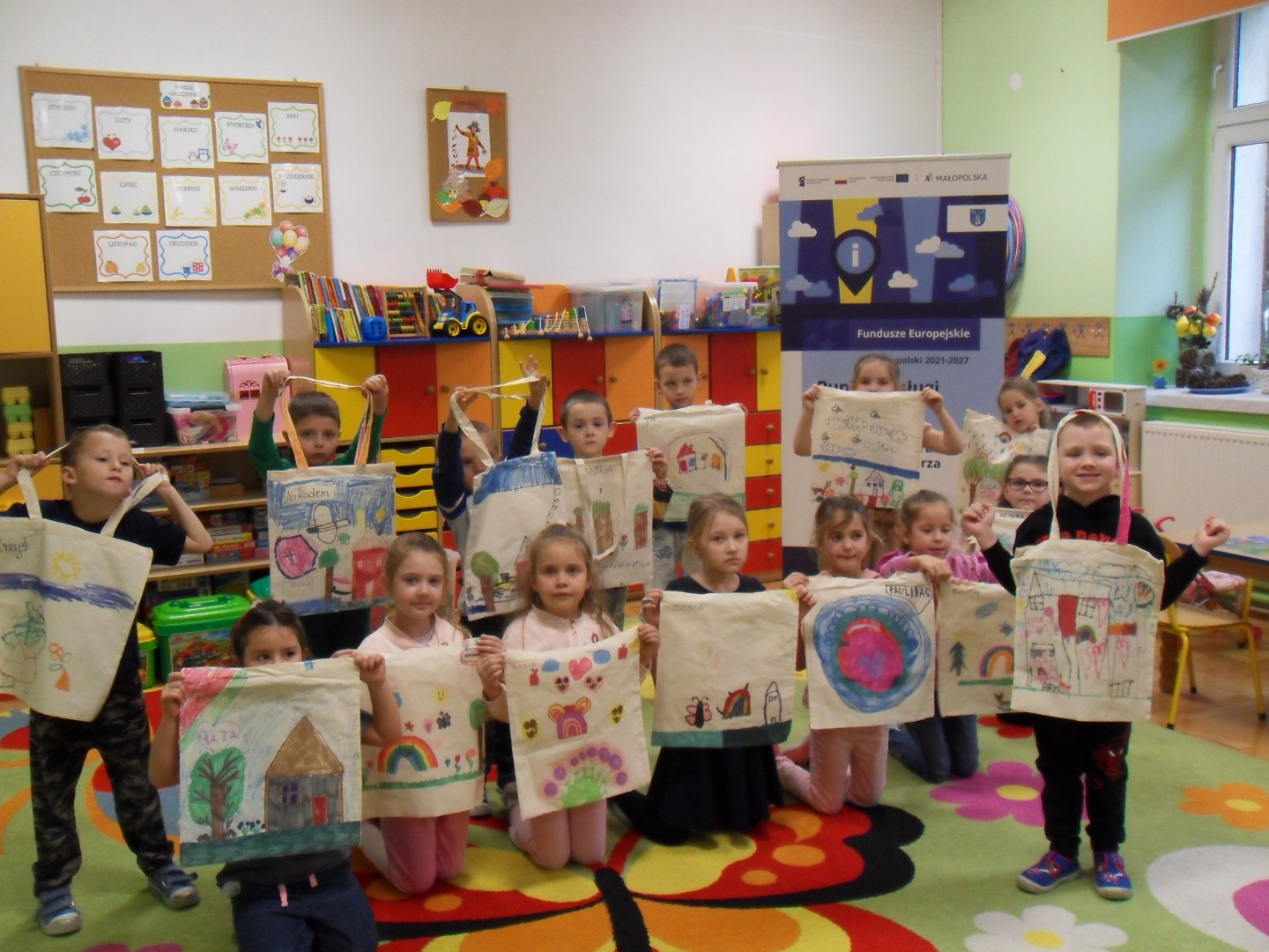 Dnia 21.11.2024 w grupach starszych odbyło się spotkanie z Ekodoradcą. Dzieci miały okazję dowiedzieć się jak ważna jest ochrona czystego powietrza i jak możemy je chronić. Wysłuchały bajki „Niedźwiedź Bruno – Czyste powietrze”. Na zakończenie dzieci ozdabiały własnoręcznie ekotorbę.