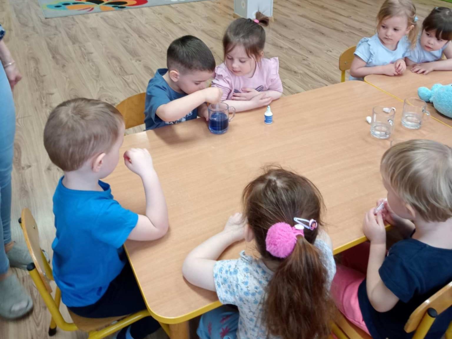W dniu 25 marca w naszym przedszkolu obchodziliśmy Dzień Wody w ramach przypadającego na 22 marca Światowego Dnia Wody. Dzieciaki dowiedziały się, jakie właściwości ma woda, co można w niej rozpuścić, jak smakuje oraz w jaki sposób można zmienić jej kolor. Przedszkolaki przeprowadzały różne eksperymenty badawcze z wykorzystaniem wody między innymi: wędrująca woda i kolorowy deszcz.