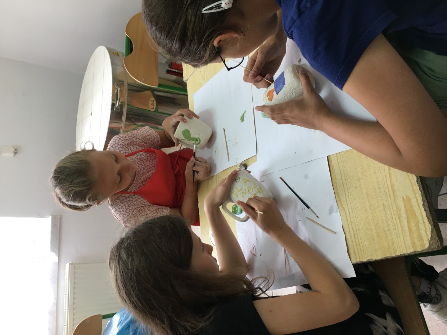 Podczas zajęć artystycznych uczniowie w dalszym ciągu nabywali umiejętności warsztatowych. Dzieci rozwijały swoje uzdolnienia plastyczne, pasje, wyobraźnię, a przede wszystkim dobrze się bawiły. Lepiły z gliny wazony, serduszka. Powstało nawet małe ceramiczne zoo. Uczniowie szkliwili i malowali farbami majolikowymi kubki i miski. Wcześniej sami je przygotowali odlewając formy gipsowe masą lejna. Uczestników bardzo cieszyła produkcja wszelkiego rodzaju kwiatów począwszy od tych recyklingowych ( z rolek, wytłoczek) po te z bibuły i krepiny. Myślę, że te przygotowane przez dzieci prezenty sprawiły radość wszystkim Mamom z okazji ich święta.