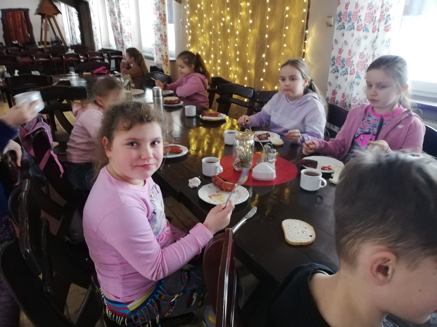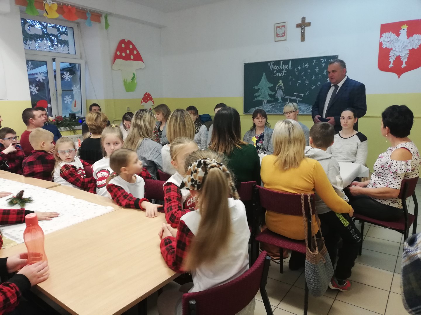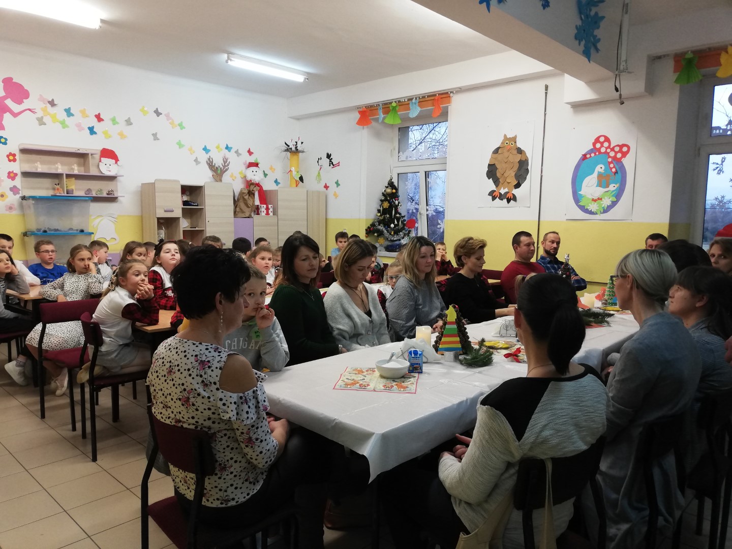 W dniu 17 grudnia 2021 odbyło się kolejne Spotkanie Rodzin w Placówce Wsparcia Dziennego. Grupa rytmiczna pani Magdaleny Zielińskiej graniem i śpiewanie kolęd rozpoczęła wspólne spotkanie. Oprócz dzieci i rodziców w spotkaniu uczestniczyli wychowawcy oraz koordynator szkolny Witold Bogdan oraz kierownik projektu Halina Łaś. Przy wigilijnym żurku i piernikach powspominaliśmy ostatni okres pracy w projekcie. Czas od wakacyjnego Festynu Rodzin to wiele wyjazdów i atrakcyjnych zajęć. Próbowaliśmy również zaplanować kolejne miesiące w następnym roku działalności. Uczniowie z wychowawcami zajęli się tworzeniem kartek świątecznych. Tak zakończyliśmy ostatni dzień stacjonarnych działań w szkole. W okresie nauki zdalnej Placówka funkcjonuje i zaprasza chętnych uczniów.