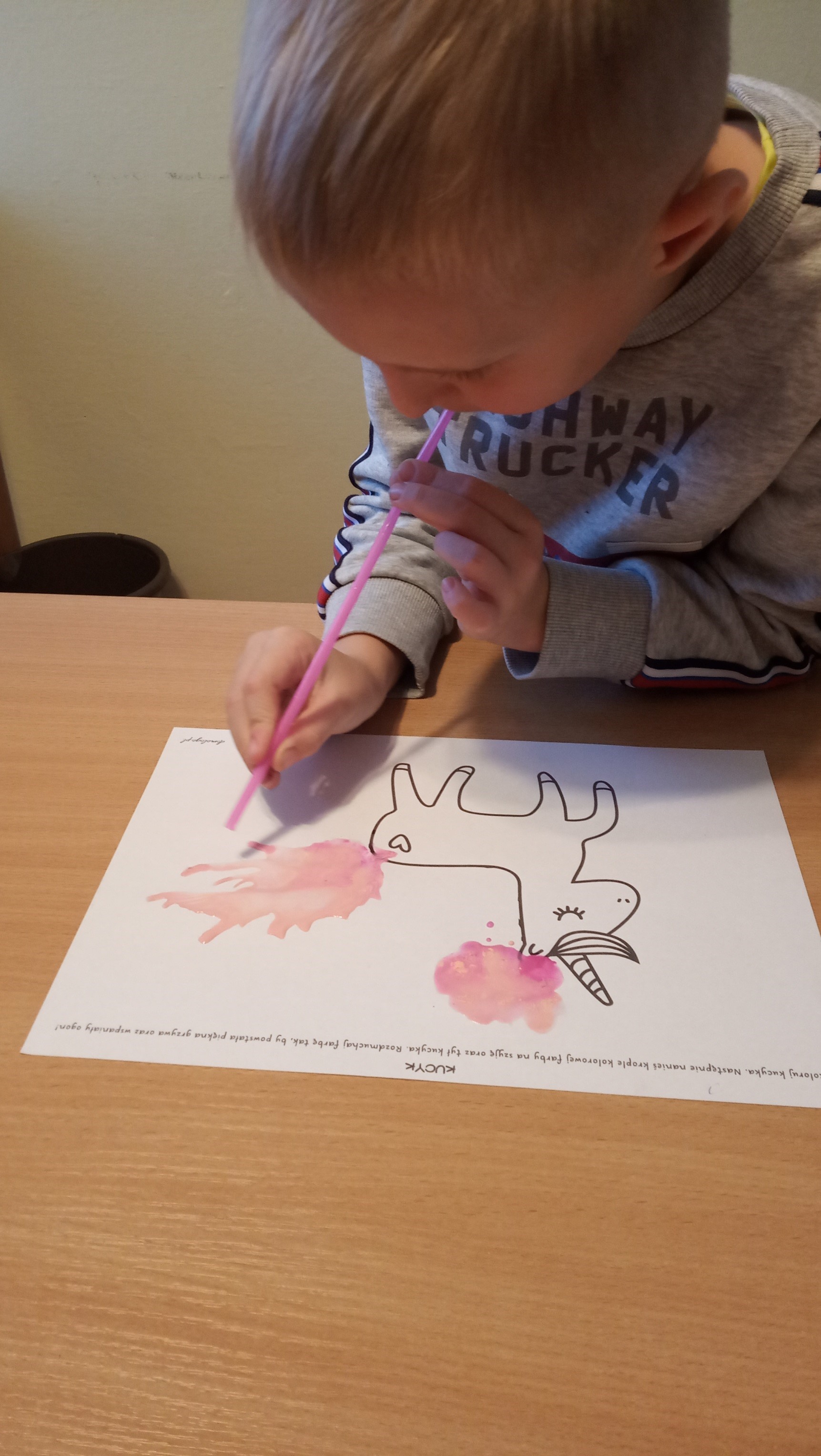 Od września 2022r. w ramach projektu Rozwoju Kompetencji Kluczowych w trzech grupach prowadzone są zajęcia logopedyczne. Podczas zajęć usprawniana jest motoryka narządów artykulacyjnych poprzez różnego rodzaju ćwiczenia języka i warg. Dzieci naśladują przed lusterkiem demonstrowane przez logopedę ćwiczenia. Słuchając bajek logopedycznych wykonują odpowiednie ruchy językiem i wargami naśladujące czynności bohaterów opowiadania. Dużym zainteresowaniem cieszą się ćwiczenia doskonalące umiejętności oddechowe. Celem ćwiczeń jest wyrobienie prawidłowego dla mowy toru oddechowego. Uczestnicy robią bąbelki z wody, dmuchają wiatraczki, przenoszą papierowe przedmioty lub piórka za pomocą słomki, dmuchając piłeczki próbują trafić do bramki, za pomocą słomki rozdmuchują plamę z farby formułując różnego rodzaju postacie lub elementy przedmiotów.