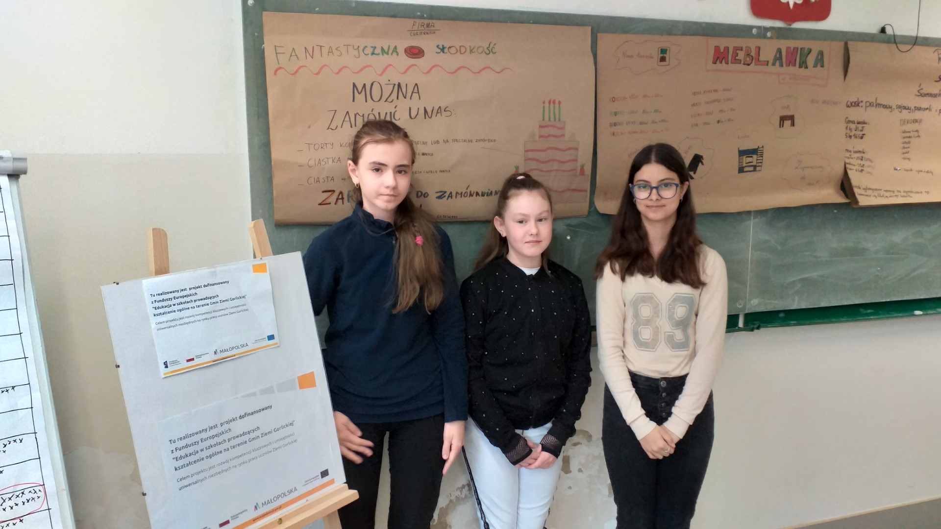 W sobotę 9 kwietnia spotkaliśmy się w projekcie ,,Edukacja w szkołach prowadzących kształcenie ogólne na terenie Gmin Ziemi Gorlickiej” na zajęciach z zakresu „Inicjatywność i przedsiębiorczość”. W czasie spotkania tradycyjnie pracowaliśmy w grupach. Każda z trzech grup wylosowała jedno z haseł: handel, usługi, produkcja. W pierwszej części zajęć uczestnicy w swoich kategoriach wypisywali firmy działające w Moszczenicy. Okazuje się, ze nawet z pomocą Internetu nie jest to łatwe zadanie. Spacer w okolicy szkoły wykazał, że sporo reklam, które codziennie widzimy, nie zawsze trafia do naszej świadomości. Wspólna analiza na koniec tej części zajęć nagle uświadamiała uczestnikom, że nie pamiętali nawet o firmie, której właścicielem jest ciocia, czy wujek. W drugiej części zajęć każda grupa w swojej kategorii miała wymyśleć nową firmę, która bardzo sprawdzi się na naszym rynku. Należało wybrać rodzaj działalności, nazwę, znaleźć siedzibę. Później trzeba było zrobić wstępny biznesplan, ocenić, czy działalność przyniesie zyski. Na koniec firmy tworzyły swoją reklamę wizualną oraz scenkę reklamową – tradycyjnie nagrywaną, by ją później ocenić. Tym razem na zakończenie zajęć były tradycyjnie nagrody – słodkie wafelki.
