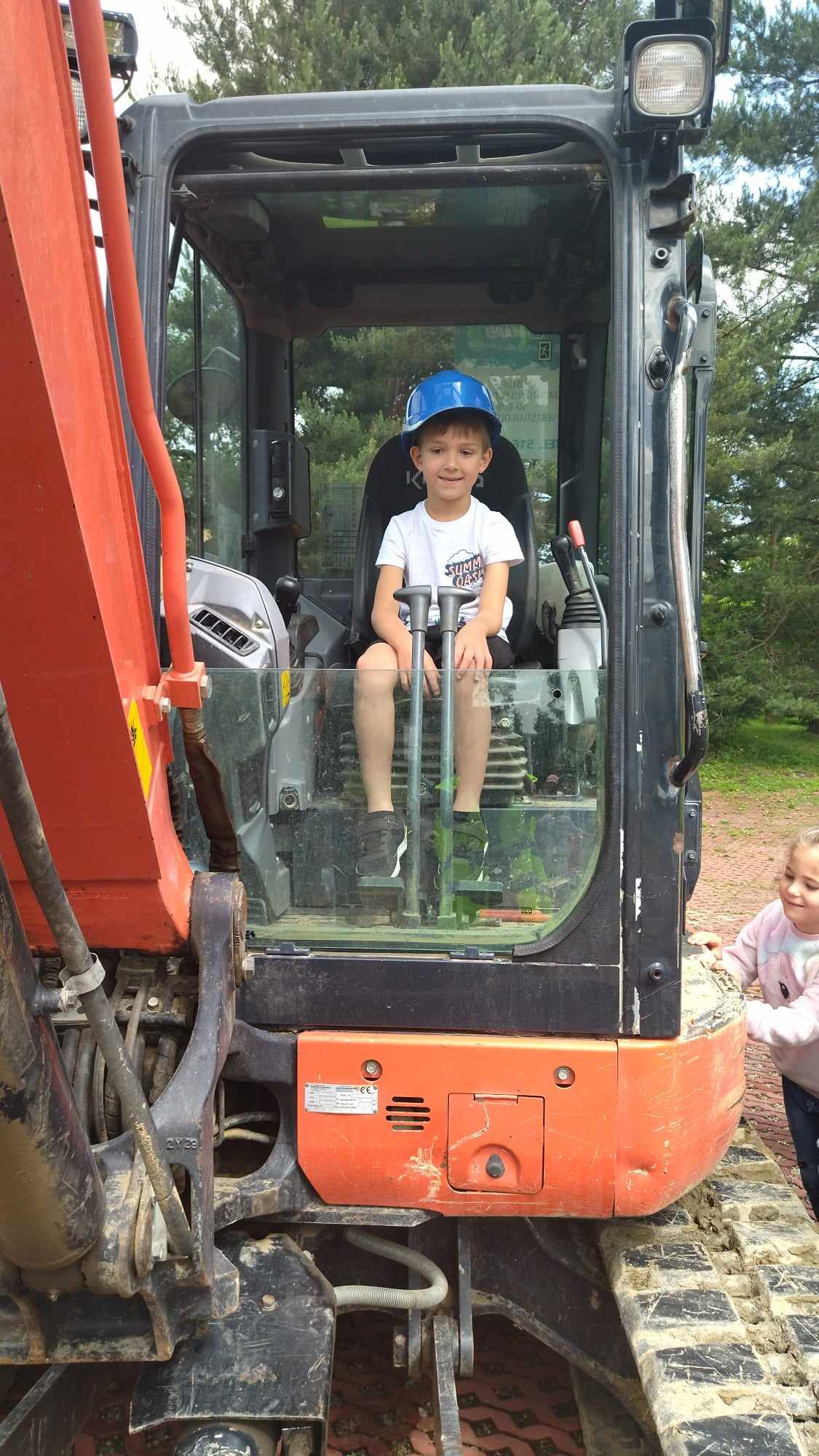 Dnia 5 czerwca dzieci odwiedziła firma budowlana So-Bud Sebastian Olszewski zajmująca się usługami budowlanymi. Na wstępie dzieci poprzez krótkie opowiadanie zostały zapoznane z charakterystyką zawodu, poznały pojazdy budowlane, odpowiednie narzędzia. Ależ to była niesamowita zabawa! Każdy chciał przymierzyć kask, kamizelkę oraz usiąść za kierownicą koparki. Dla wielu przedszkolaków było to pierwsze zetknięcie z tego typu sprzętami. Satysfakcja i duma rozpierała dzieci.