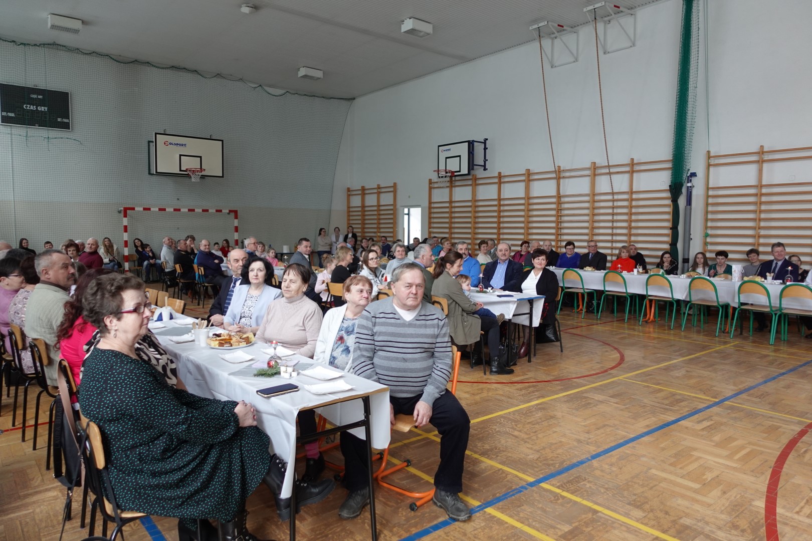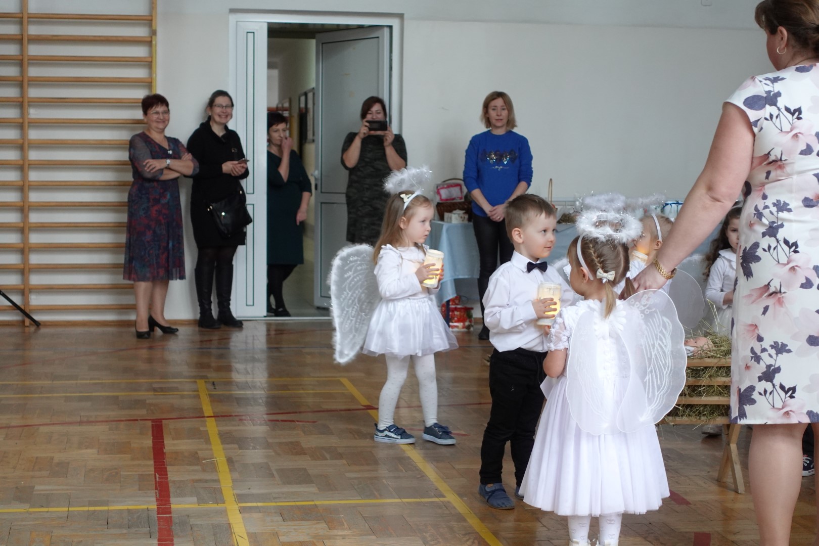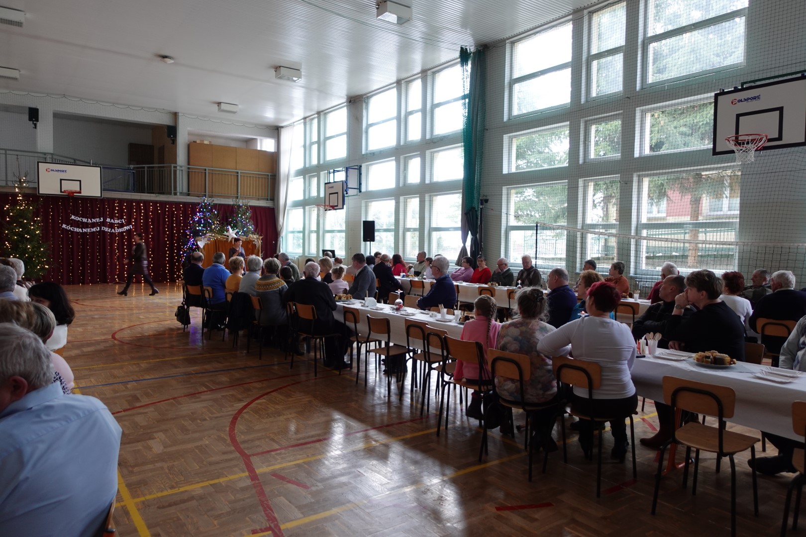Takimi słowami rozpoczęło się przedstawienie jasełkowe, które z okazji "Dnia Babci i Dziadka" przygotowały przedszkolaki z grup Śmieszki i Wesołki .Przedstawienie odbyło się 30.01.2023r. na sali gimnastycznej w szkole podstawowej. Mali artyści z wielkim przejęciem i zaangażowaniem odgrywali swoje role: Józefa, Maryi, aniołków, królów, pasterzy i krakowiaków. Śpiewane przez dzieci kolędy i recytowane role przeniosły nas w czas Świąt Bożego Narodzenia, napełniły radością, ale też odrobiną zadumy. Babcie i dziadkowie byli bardzo dumni ze swoich wnucząt i nagrodzili ich występ dużymi brawami. Na koniec występu przedszkolaki złożyły życzenia swoim dziadkom i wręczyły własnoręcznie wykonane upominki. Rodzice przygotowali dla wszystkich pyszny poczęstunek. Było ciasto, ciasteczka, kawa i herbata.