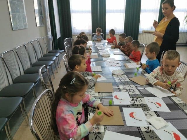 26 i 27 października przedszkolaki z grup Leśne Ludki i Wesołki zostały zaproszone na warsztaty patriotyczne do OKiB w ramach realizowanego tam projektu pt. "Kocham Polskę". Zajęcia poprowadziła pani Sabina Urbańska-Nadzionek. Dzieci wzięły udział w różnych zabawach i wykonały piękne prace plastyczne.