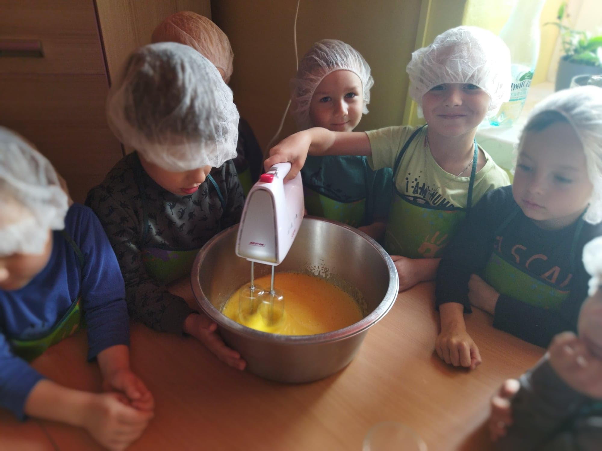 Dnia 24 października dzieci z grupy Wesołki razem ze swoją wychowawczynią panią Krysią upiekły pyszne i zdrowe ciasto marchewkowe. Jak się okazało, pieczenie ciasta, to nie taka trudna sprawa. Szczególnie, gdy do pomocy jest tyle małych i zdolnych rąk. Tak urozmaicone zajęcia zawsze przynoszą wiele radości, a własnoręcznie upieczone ciasto zjadły nawet największe niejadki.