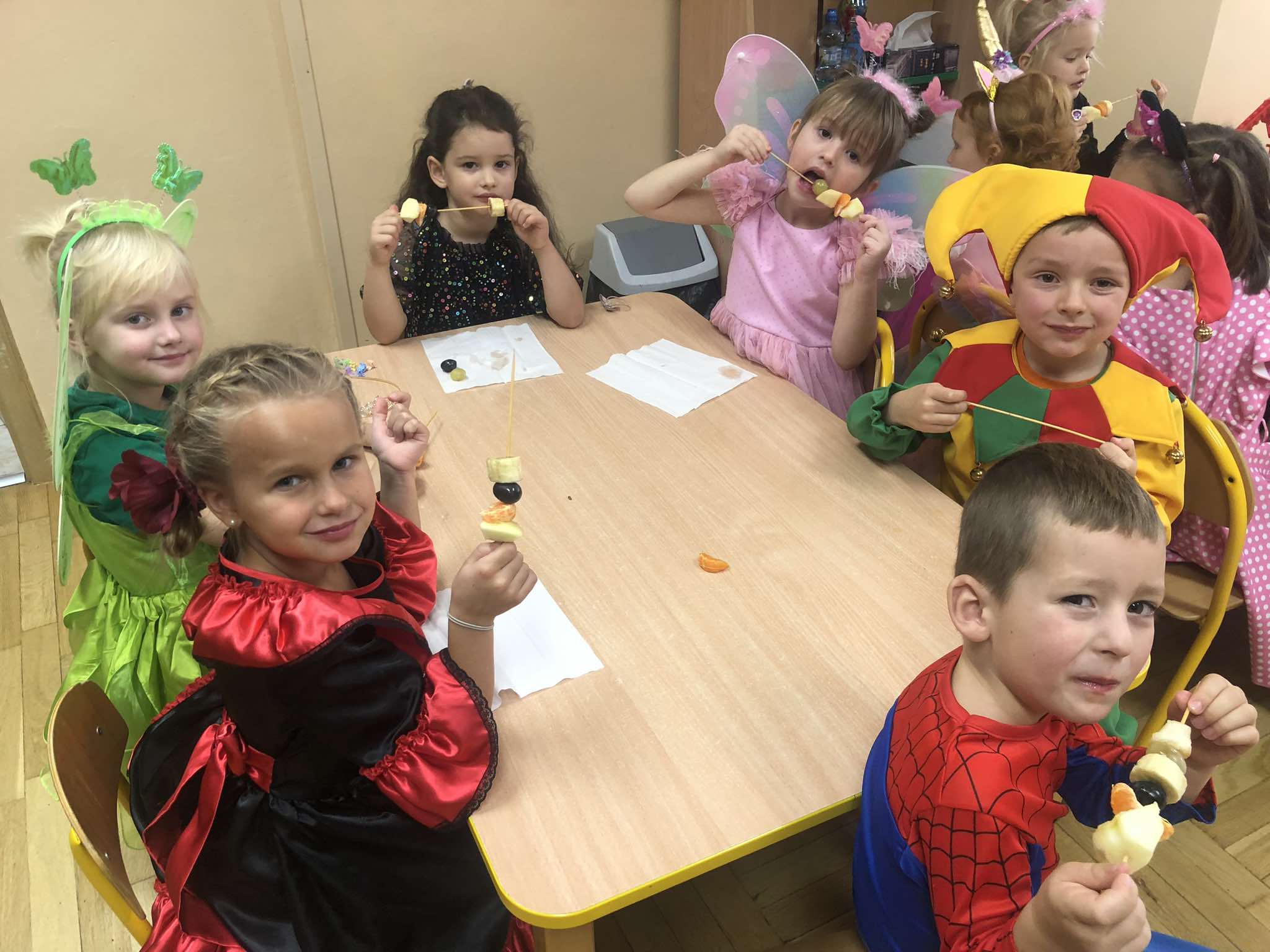 Międzynarodowy Dzień Postaci z Bajek obchodziliśmy 5 listopada i to właśnie tego dnia nasze przedszkole zamieniło się w niezwykłą krainę bajkowych postaci. Dzieci przywitały się bajkowym powitaniem, a następnie, aby przenieść się do bajkowej krainy musiały wypić magiczny napój. Wykonywały zadania z kuferka m. in. zagadki z latarką oraz pomagały Kopciuszkowi oddzielić groch od kaszy. Były zabawy ruchowe i taneczne. W przerwie od zabaw dzieci zajadały szaszłyki owocowe przygotowane przez Radę Rodziców Przedszkola. Na zakończenie miały okazję obejrzeć humorystyczny teatrzyk pt. „Czerwony Kapturek” w wykonaniu nauczycieli. Ten dzień był doskonałą okazją do świetnej zabawy i rozwijania zainteresowań czytelniczych, sprawił dzieciom wiele radości.
